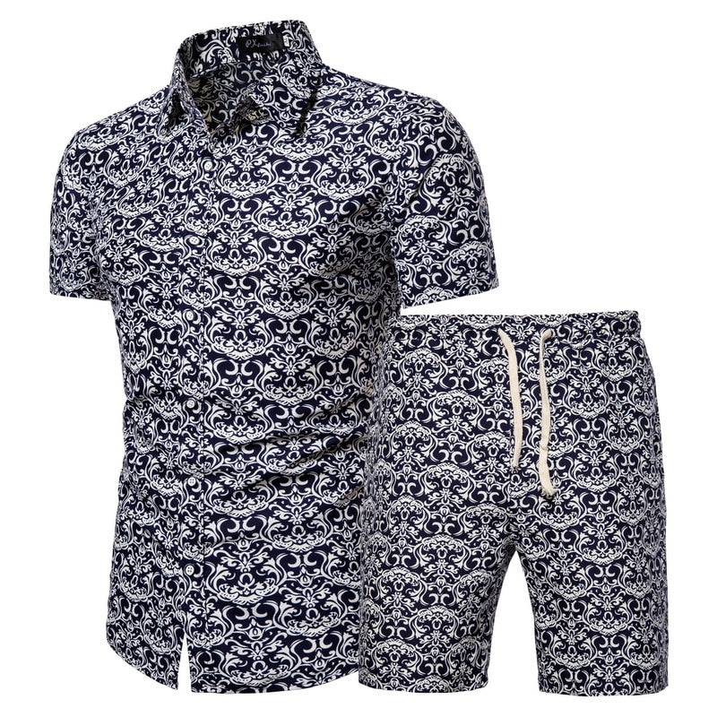 Personality Summer New Men's Clothing Short-sleeved Printed Shirts Shorts 2 Piece Fashion Male Casual Beach Wear Clothes