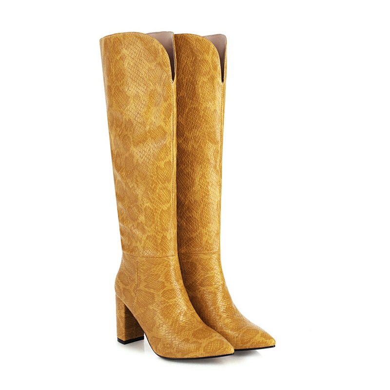 Plus size 34-43 print western boots female New brand women boots thick high heels knee high boots pointed toe ladies shoes