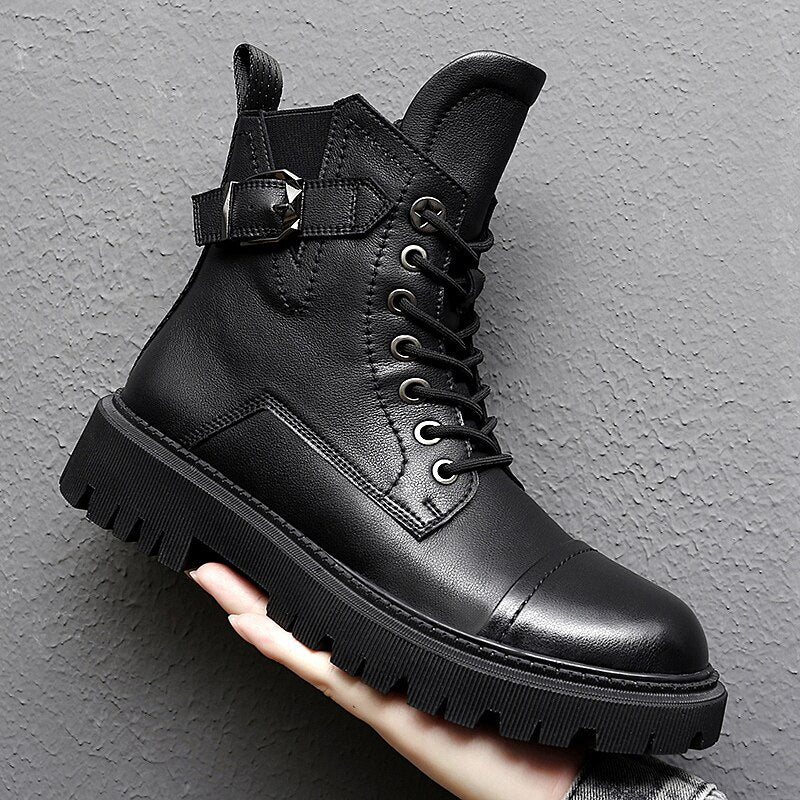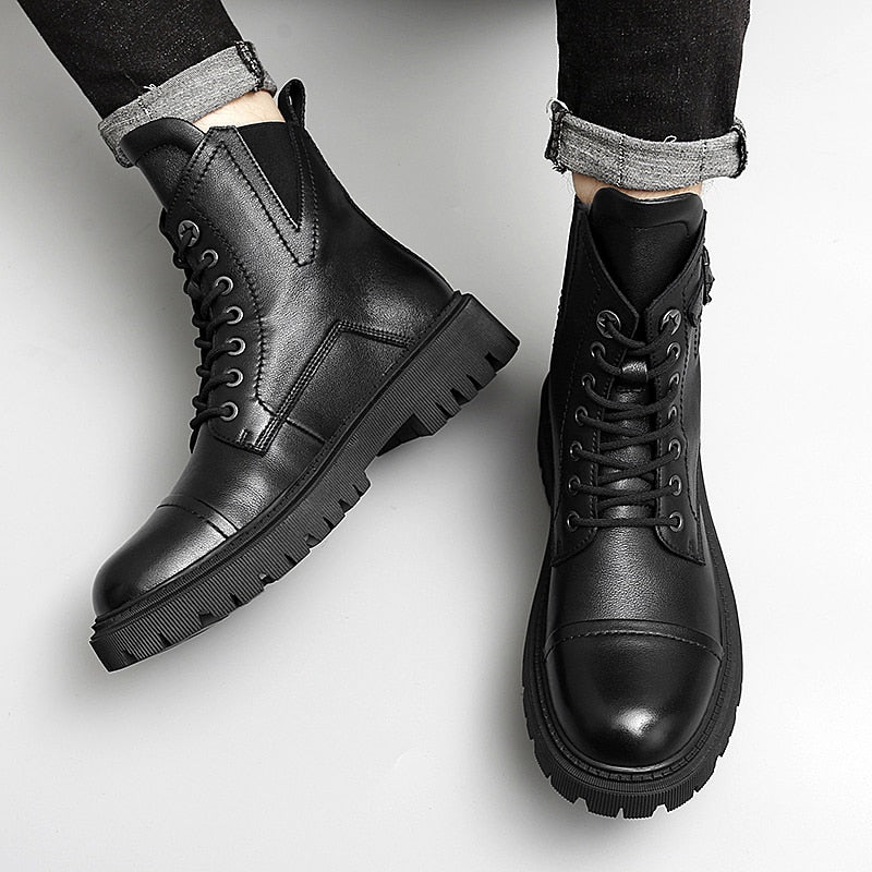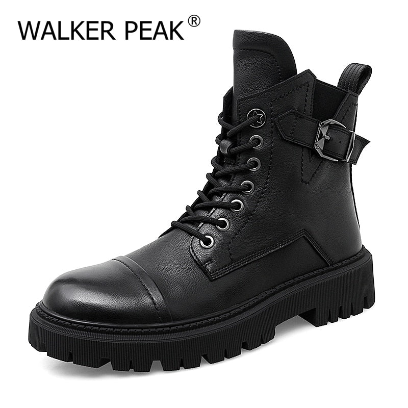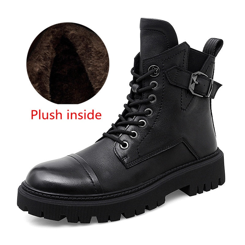 Punk Ankle Boots Mens Warm Comfortable Wear-resistant Sole Shoes Man Winter Motorcycle Boots Back Zip Male Walking Boots New