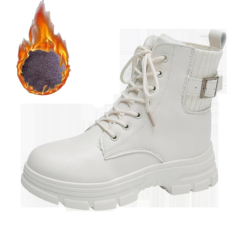 Punk Gothic Combat Ankle Boots Women Sock Platform Boots Fur 2021 New Autumn Black Beige Boots Fashion Designer Shoes Female