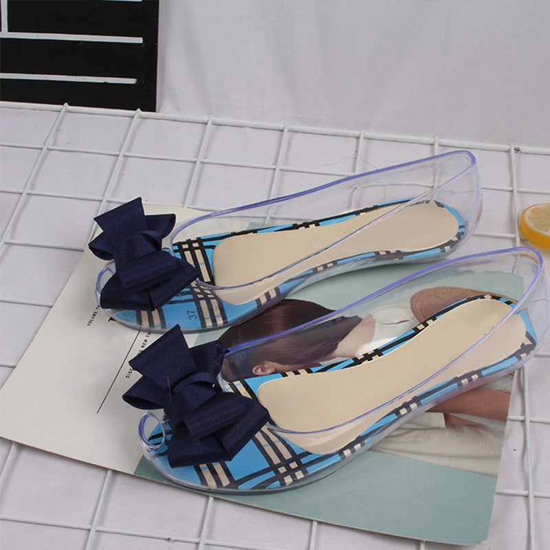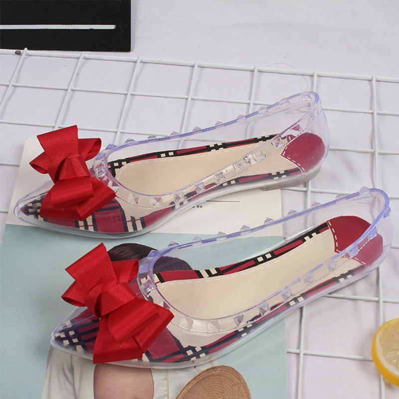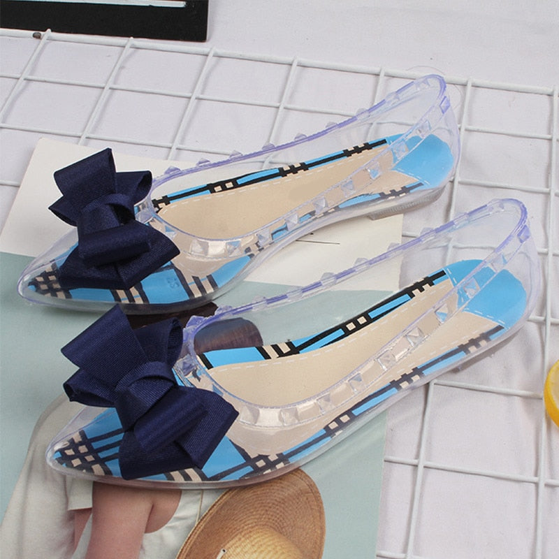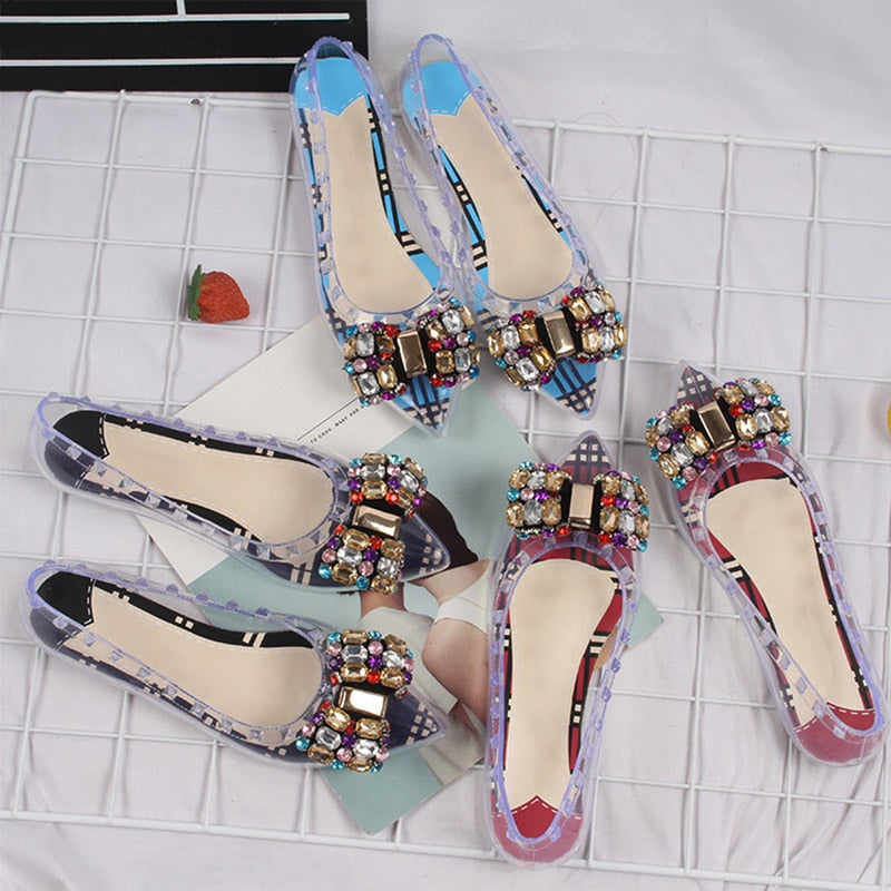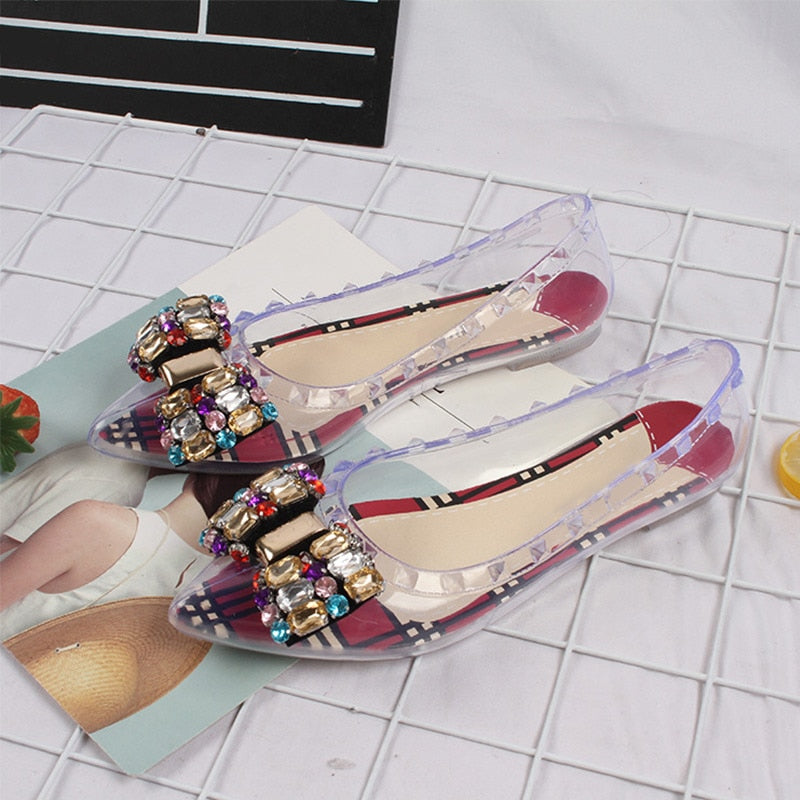 PVC Sandals Ladies Crystal Butterfly Knot Shoes Female Rivet Fashion Woman Casual Sandal 2021 Transparent Summer Cover Heel Shoe