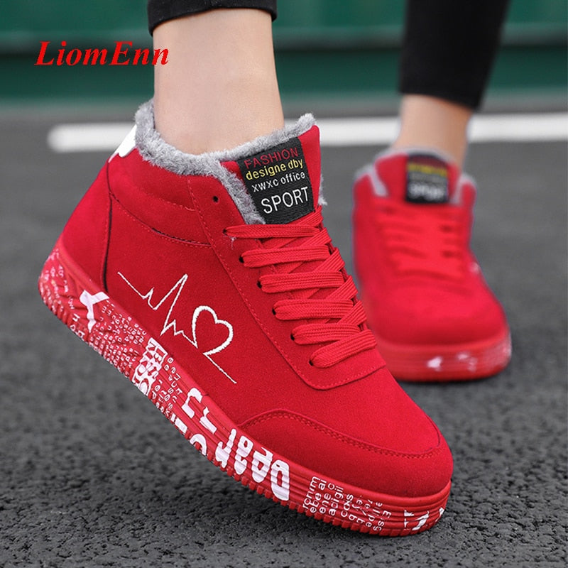 Red Canvas Winter Boots Women Sneakers 2021 New Fur Snow Ankle Boots Men Unisex Casual Sports Shoes Female basket Big Size 35-44