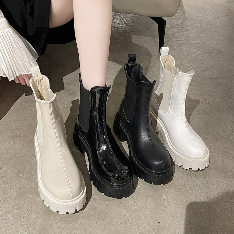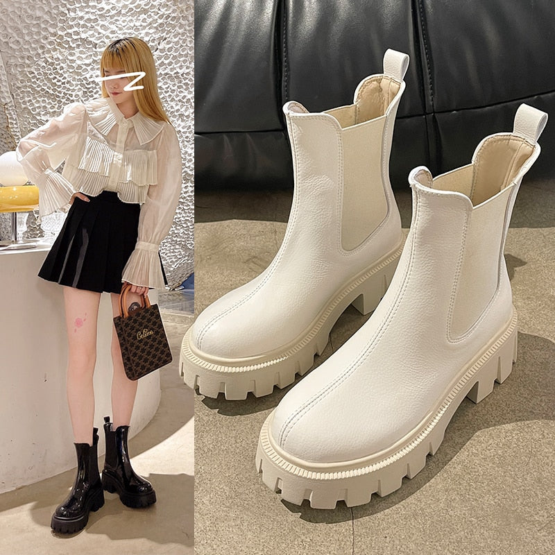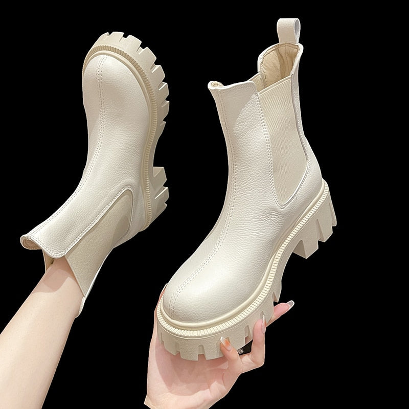 Round Toe Platform Womens Boots Luxury Brand High Top Winter Fleece Warm Shoes Anti-skid Woman Chelsea Booties Botas