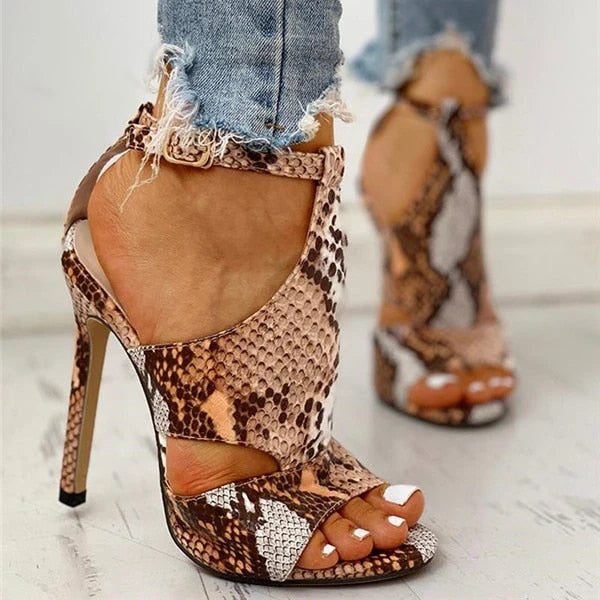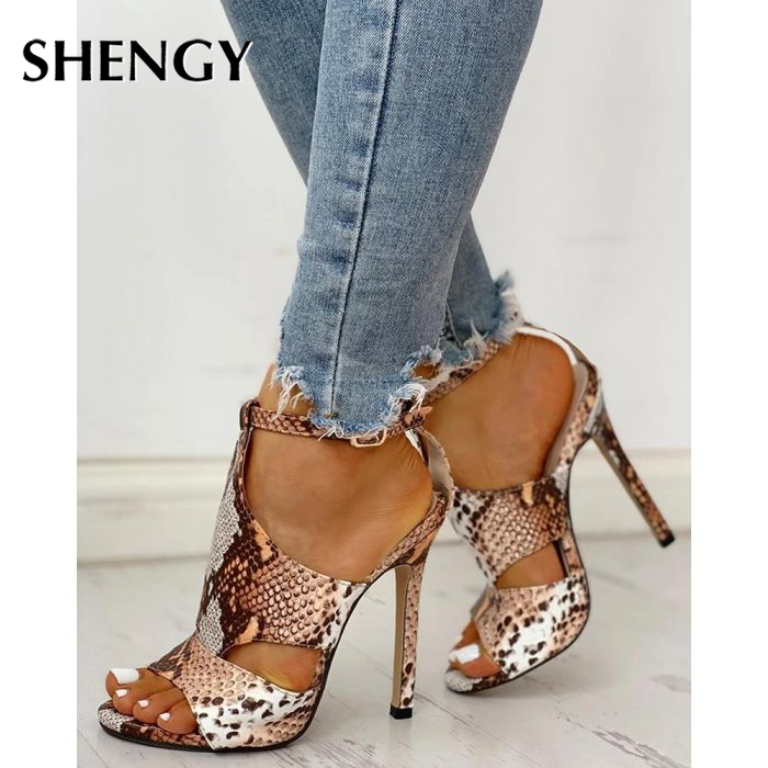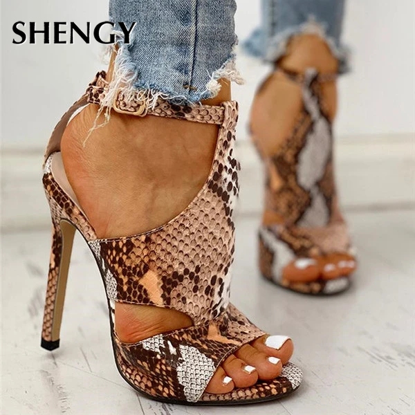 SHENGY Women Pumps Snake Wedding Shoes Sandals Summer Low Heel Shoes PU  Gladiator Luxury Shoes Women Designers Zapatos De Mujer
