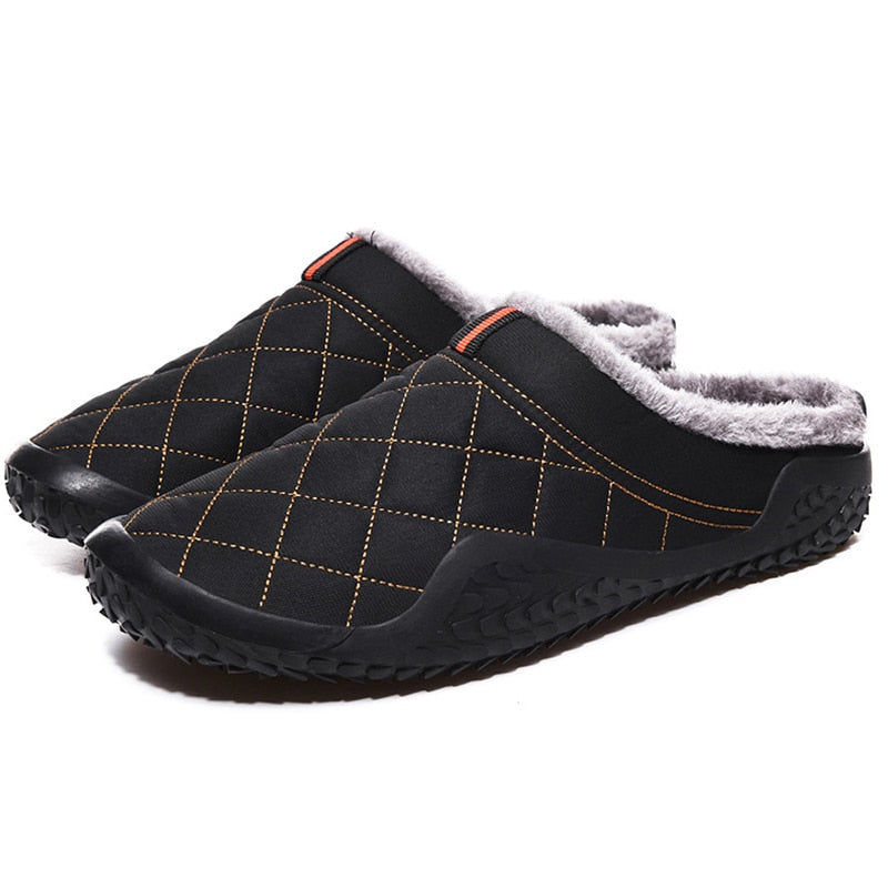 Slippers for Men Gingham Warm Indoor Slippers Short Plush Slippers with Fur Size 44-48 Men Casual Shoes Non-slip Home Slippers