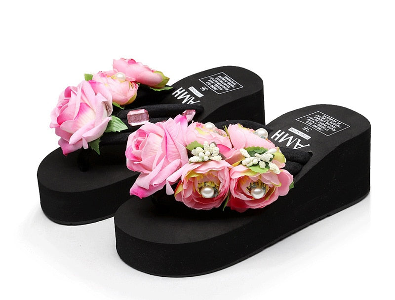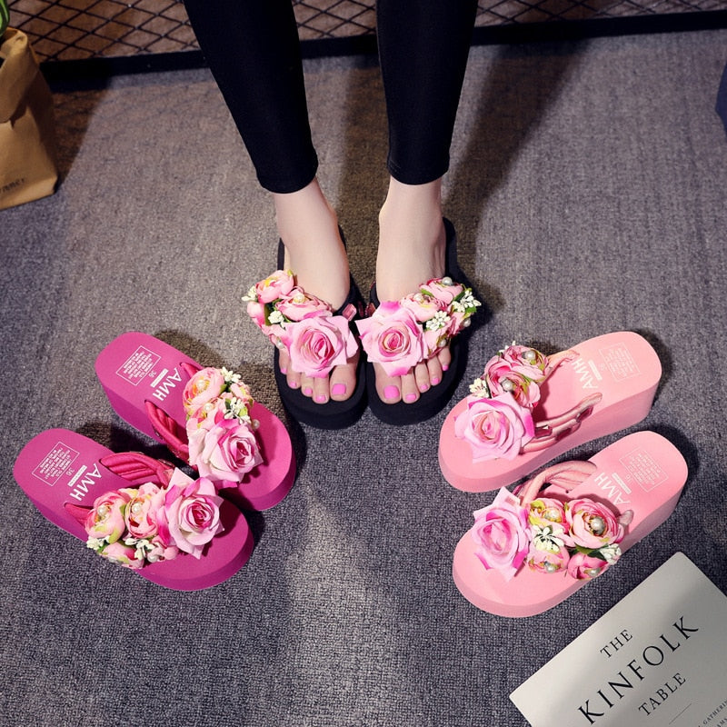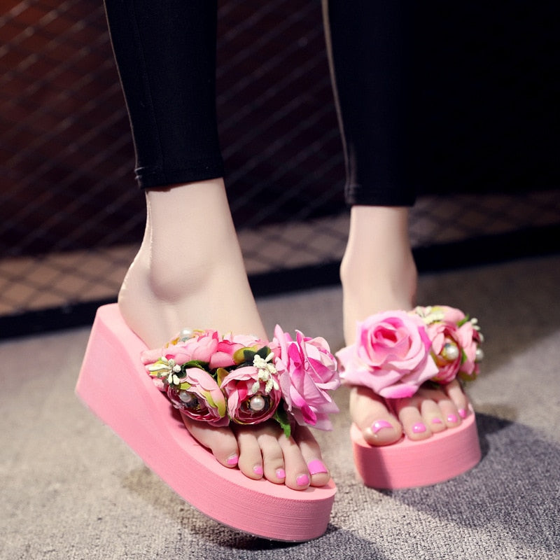 Slippers Women Handmade Slippers Summer Flip Flop Flowers Female High Heel Ladies Bohemia Beach Sandal Slippers Home Slippers