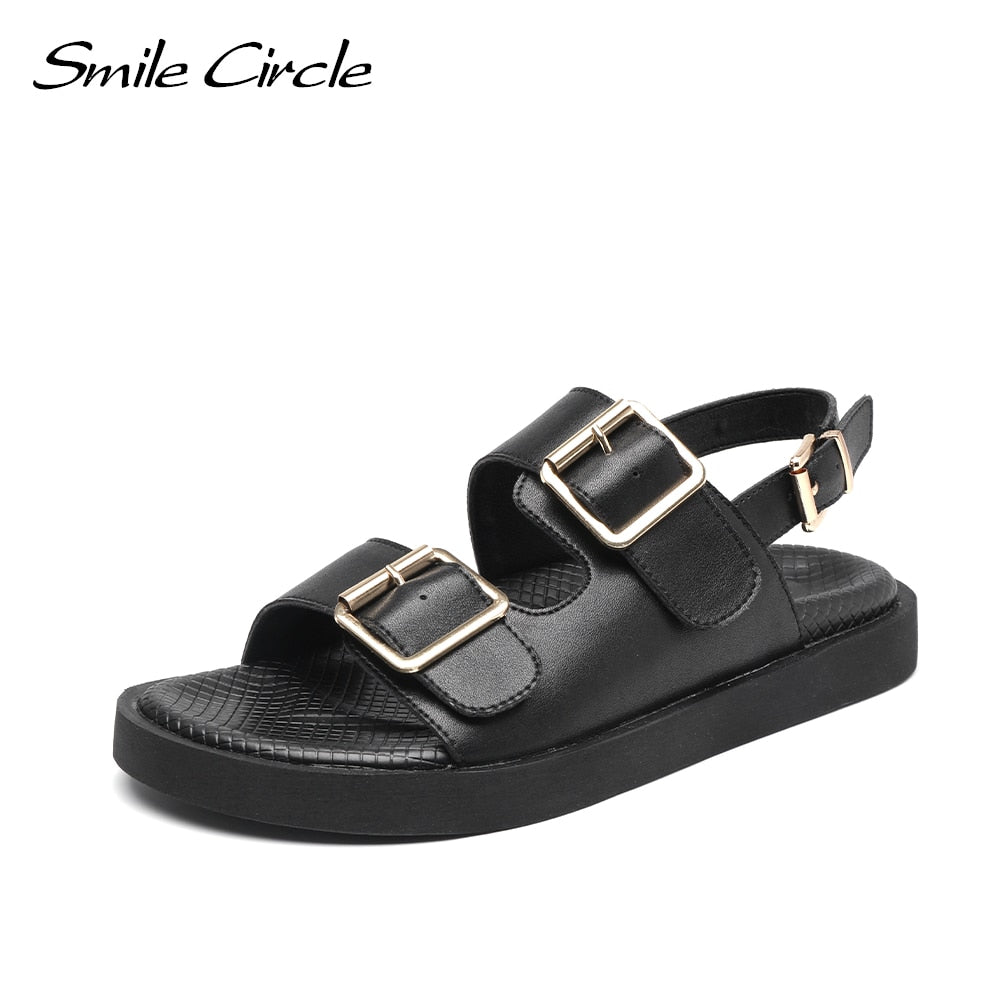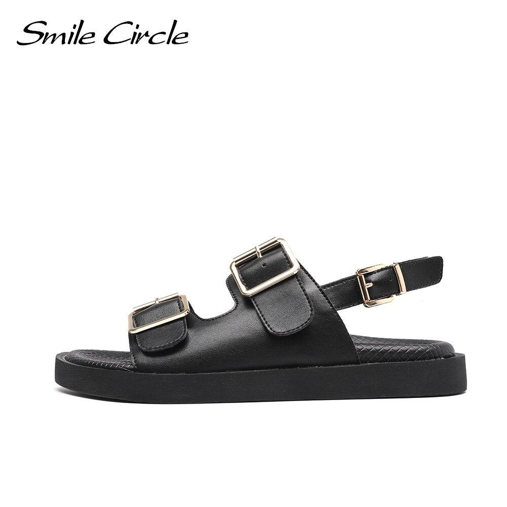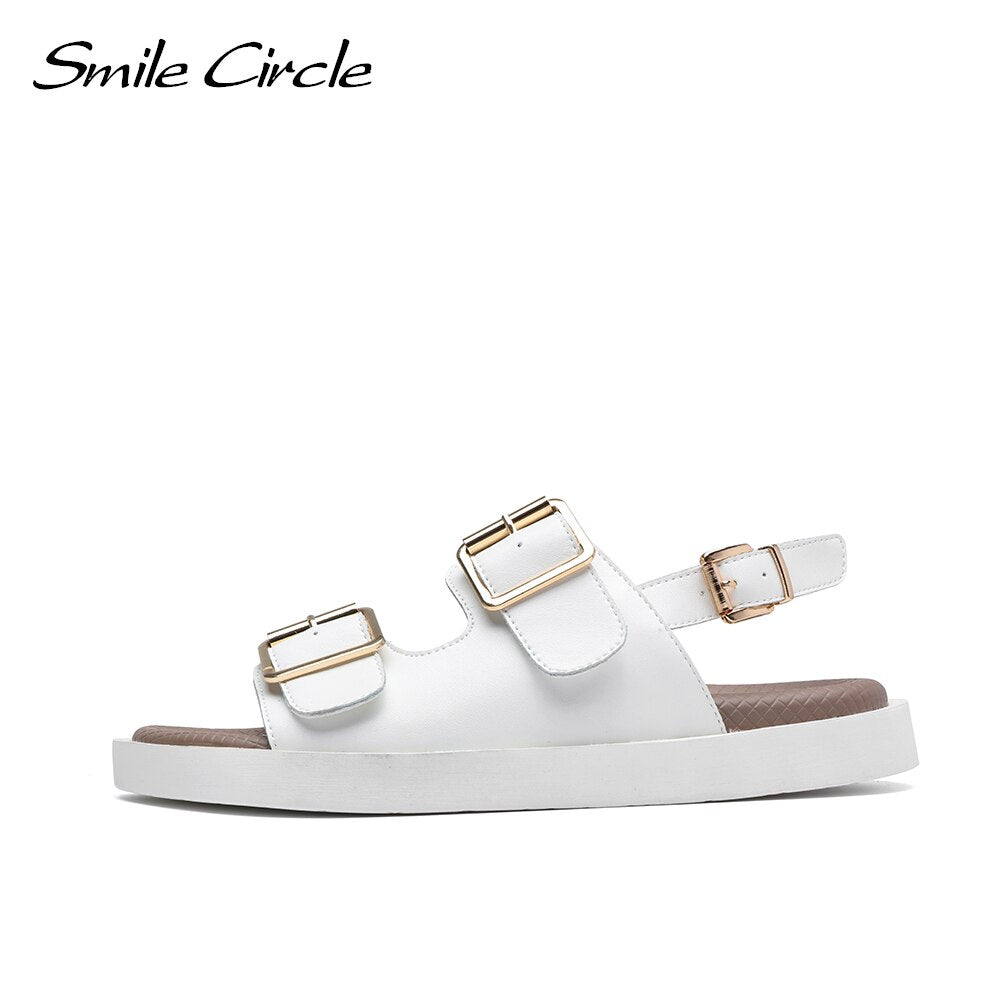 Smile Circle 2021 Summer Women Sandals Flats Platform shoes Fashion Casual Metal buckle Soft bottom Ladies sandals