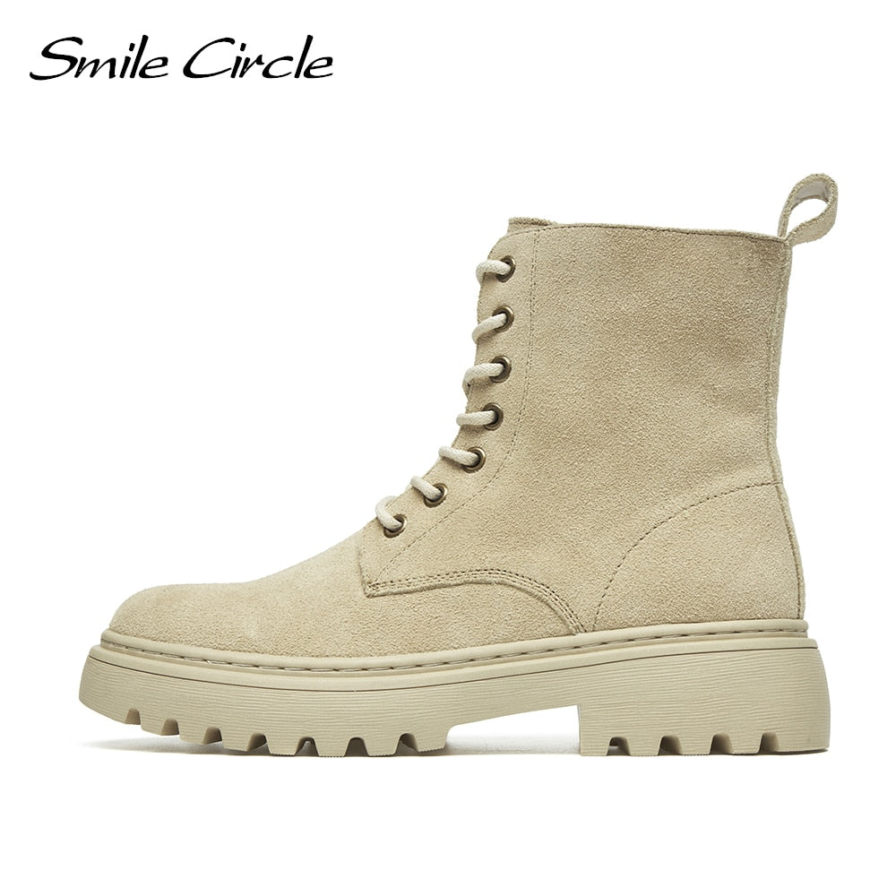 Smile Circle Ankle Boots Women Cow suede Platform Boots Fashion Plus Velvet Warm Comfortable Ladies Short Booties femme