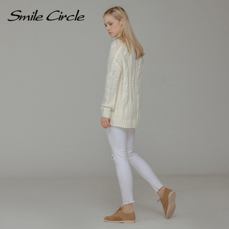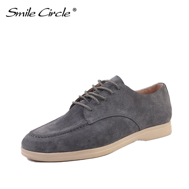 Smile Circle suede leather women loafers flat shoes autumn ladies shoes cross straps cool tide color large size 36-41