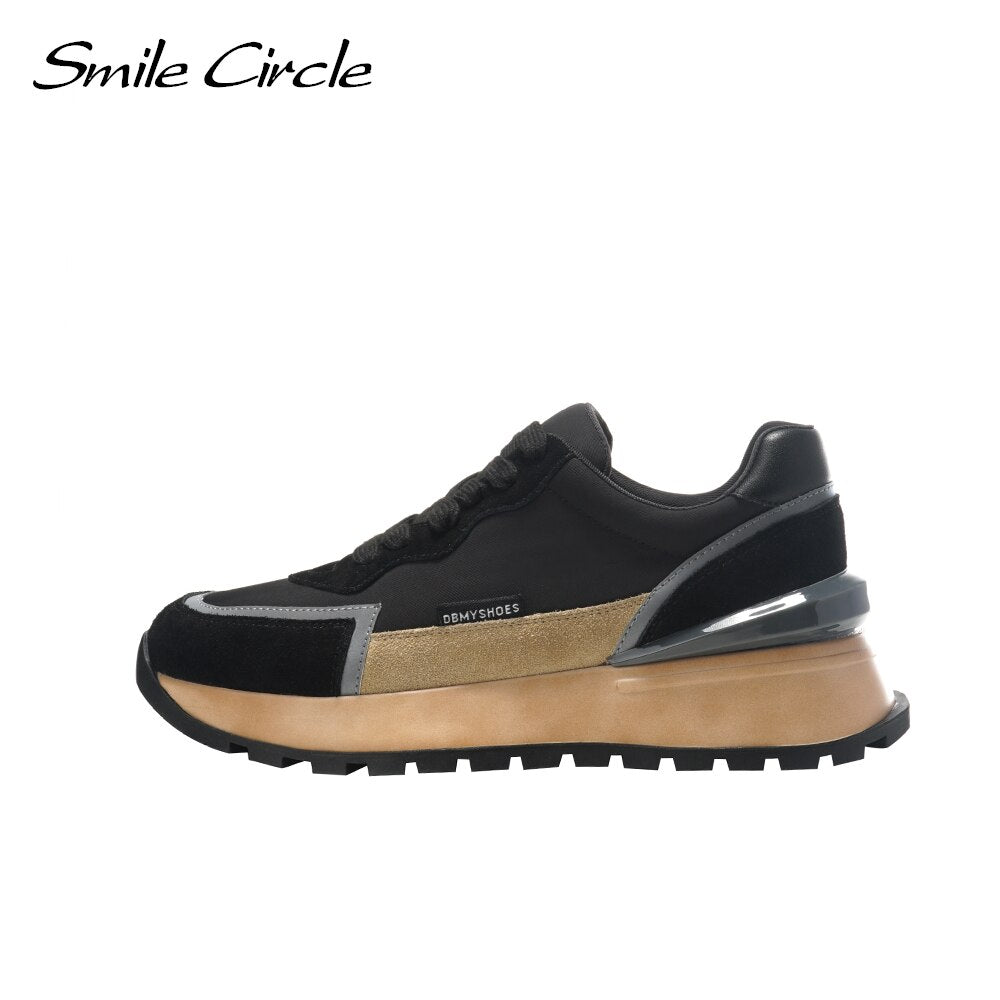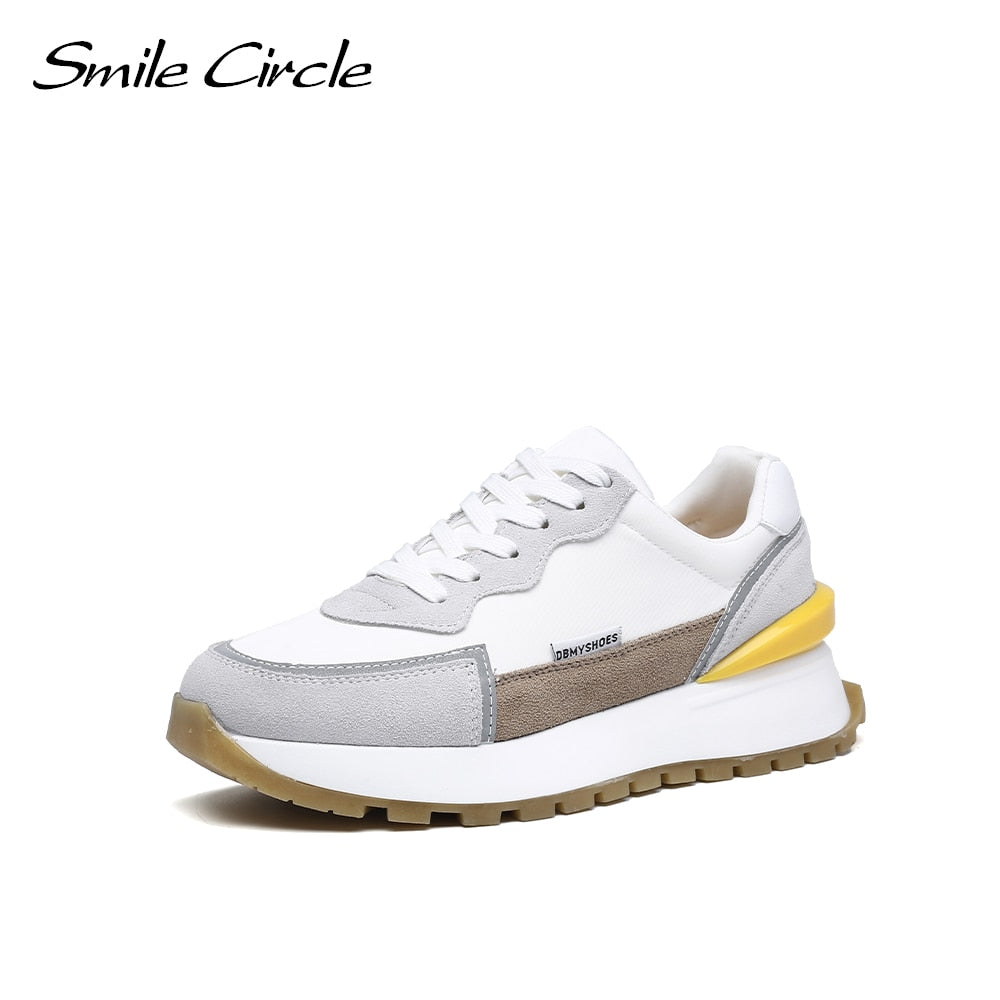 Smile Circle Women Sneakers Flat Platform shoes Cow Leather spring fashion Reflective Breathable Thick bottom Ladies Shoes