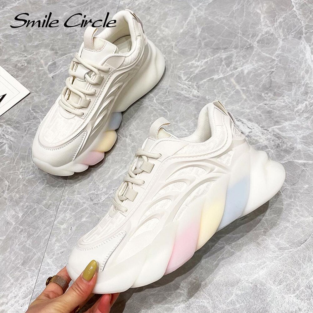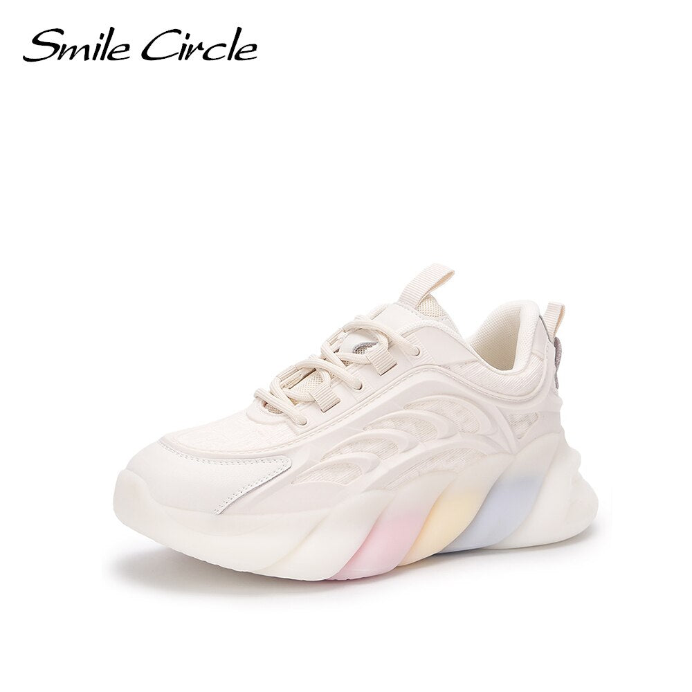 Smile Circle Women Sneakers Flat Platform Shoes Spring fashion Lace-up Breathable mesh Thick bottom Chunky Sneakers Ladies Shoes