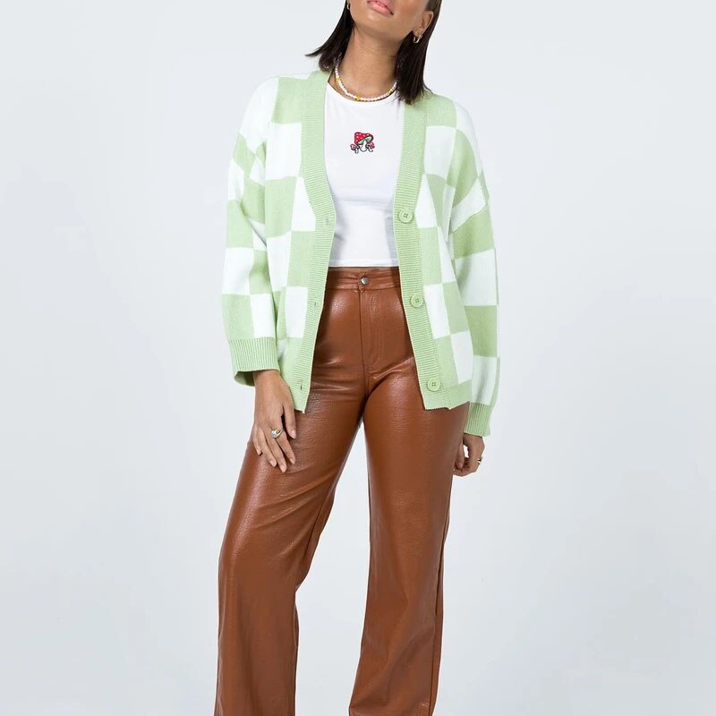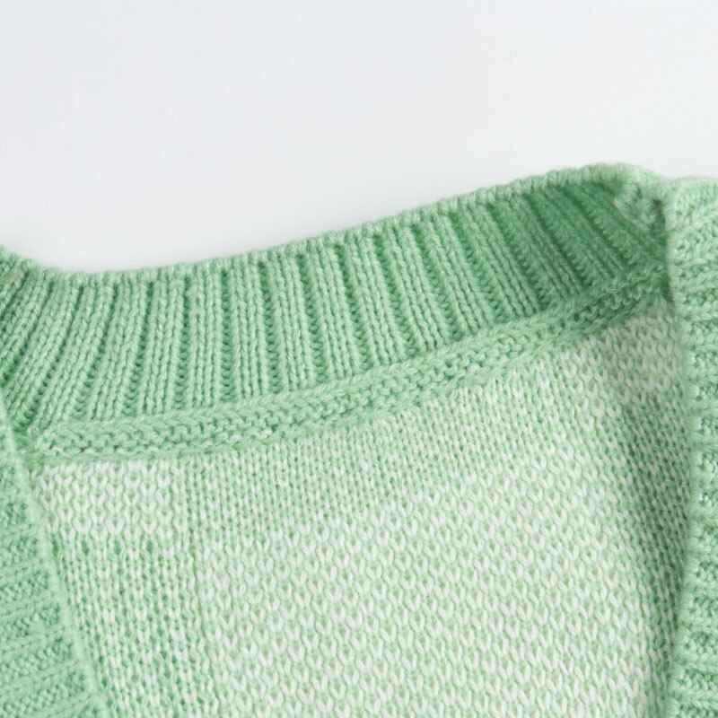 Spring and Autumn Women's Casual Plaid V-neck Long Sleeve Cardigan Sweater