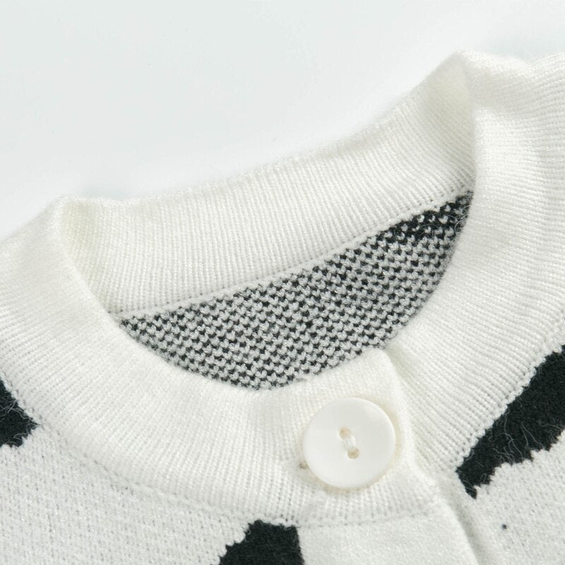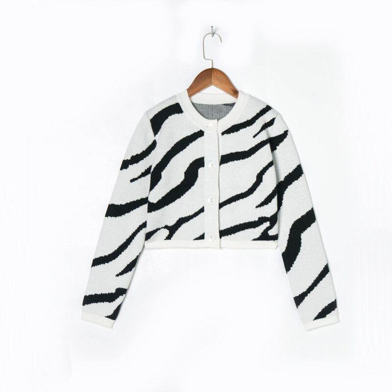Spring and Autumn Women's Casual Striped Round Neck Long Sleeve Short Cardigan Sweater