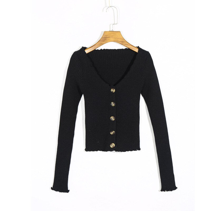 Spring and Autumn Women's Sweater Casual Solid Color V-neck Long Sleeve Short Slim Sweater
