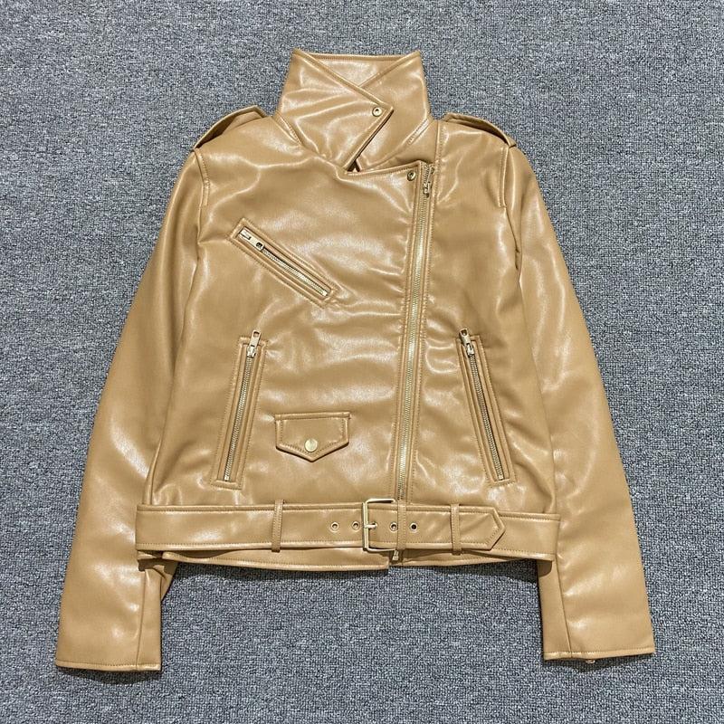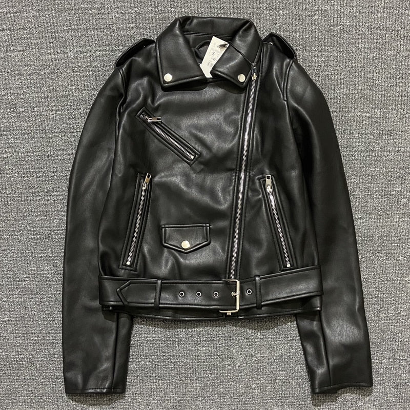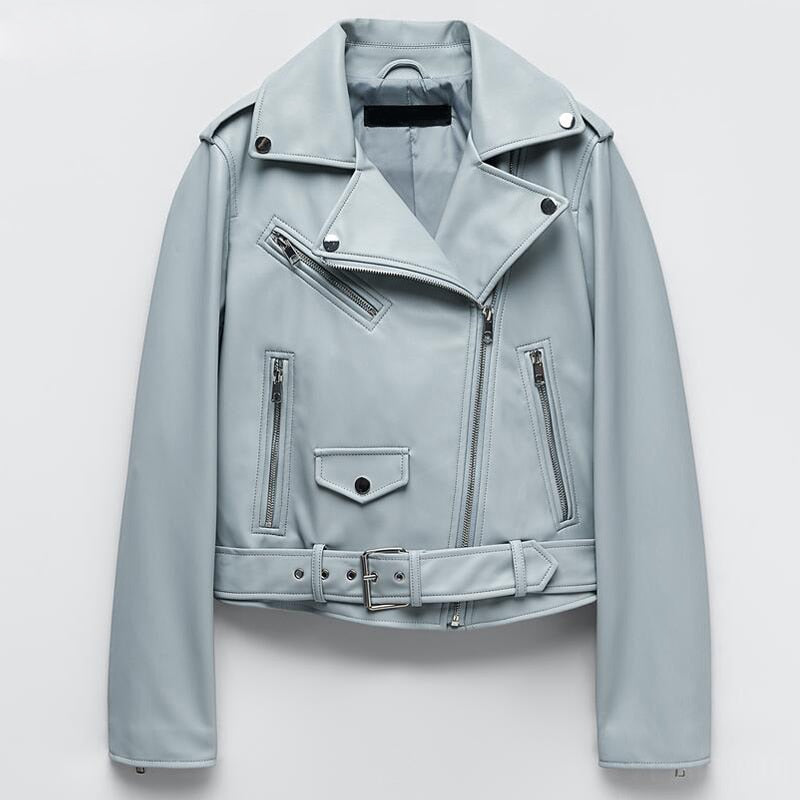 Spring Autumn Women Faux Leather Jacket Ladies Solid With Belt Zipper Biker Coat Female Casual Outwear