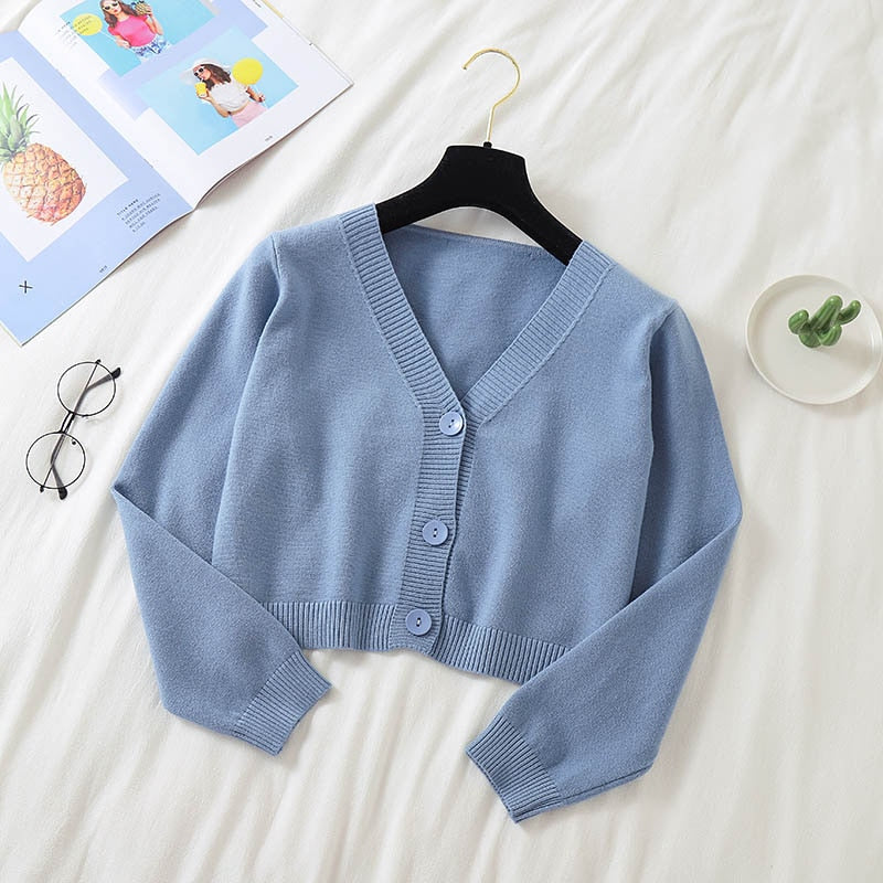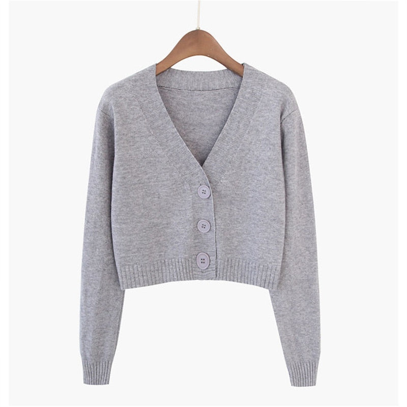 Spring Newly Green Cropped Cardigans Women 2021 Loose Ladies Short Knitted Sweaters Long Sleeve V neck Solid Chic Streetwear