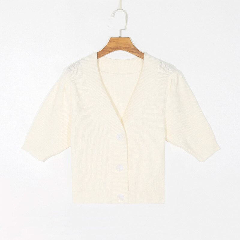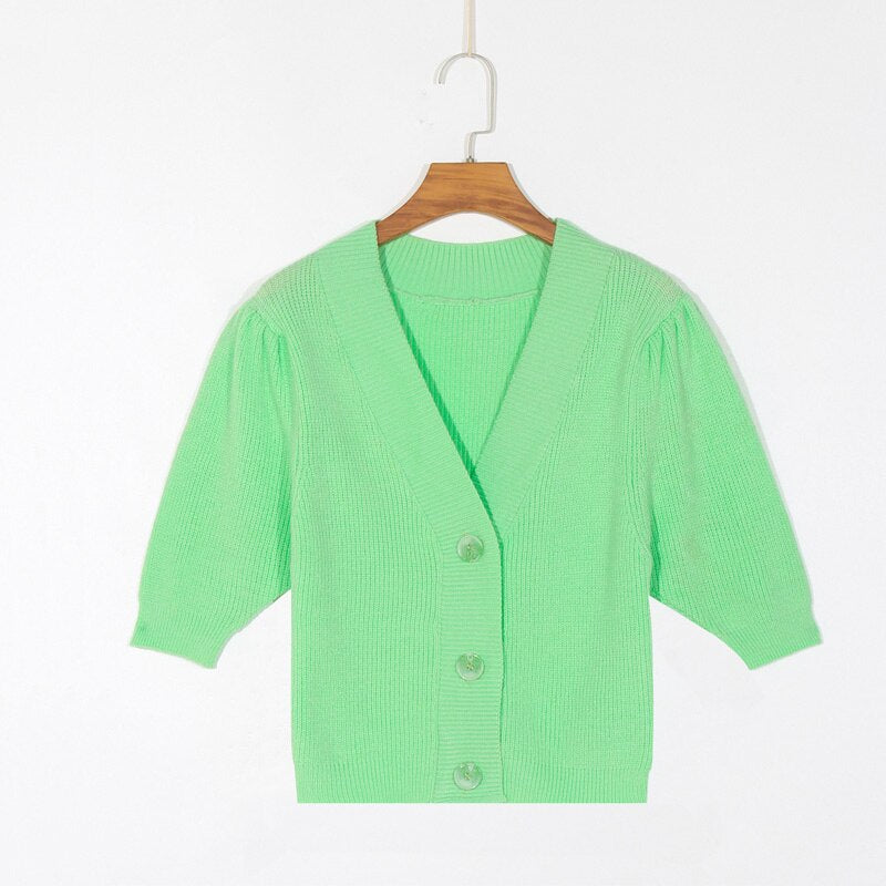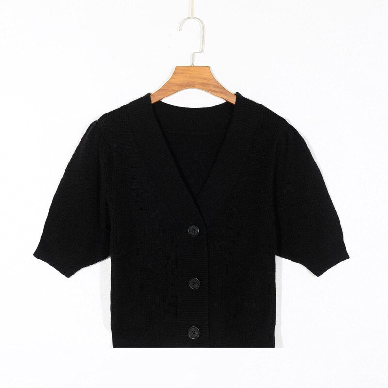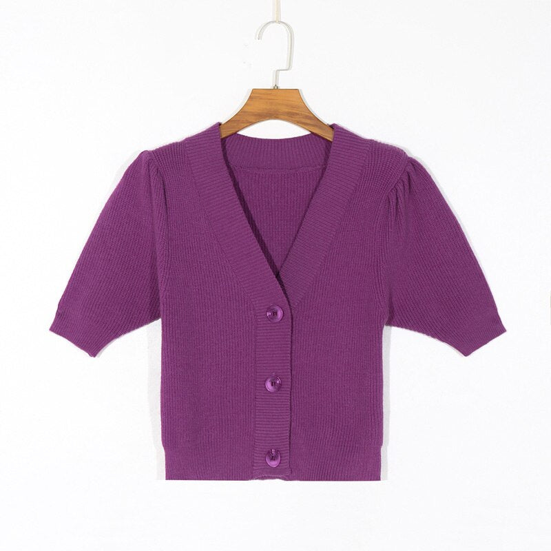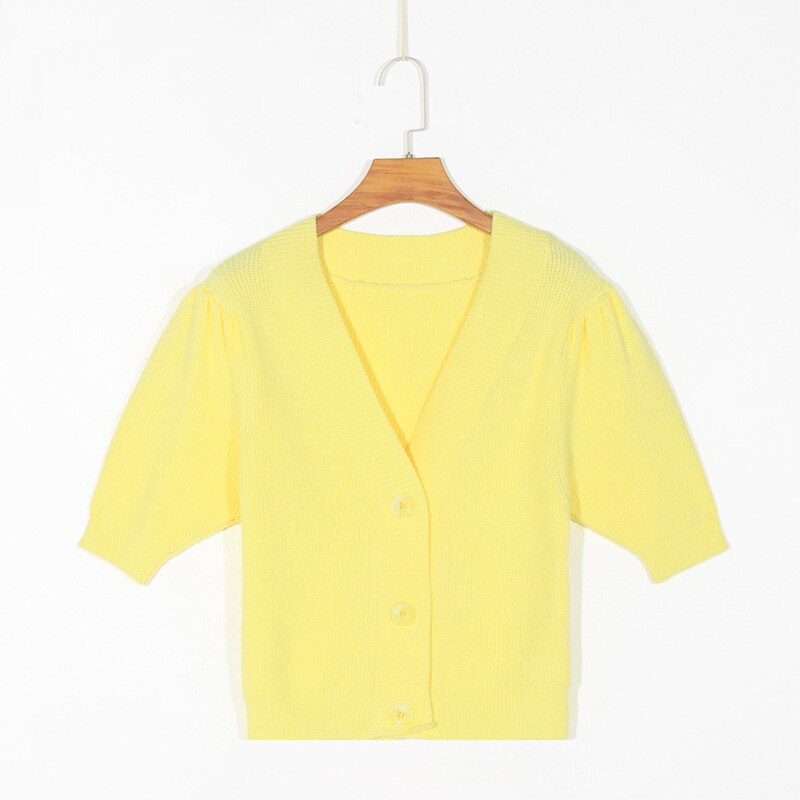 Spring women's sweater casual solid color V-neck short sleeve sweater