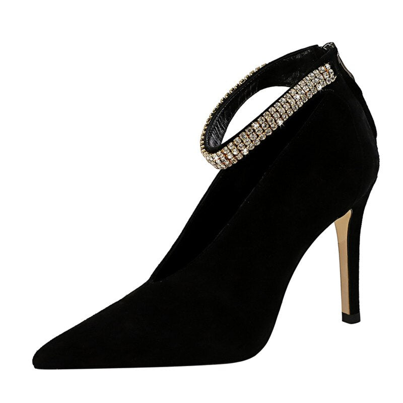 Star style Luxury Crystal Women Pumps Elegant Thin heeled Office Lady shoes Fashion deep V design High heels Party Prom shoes