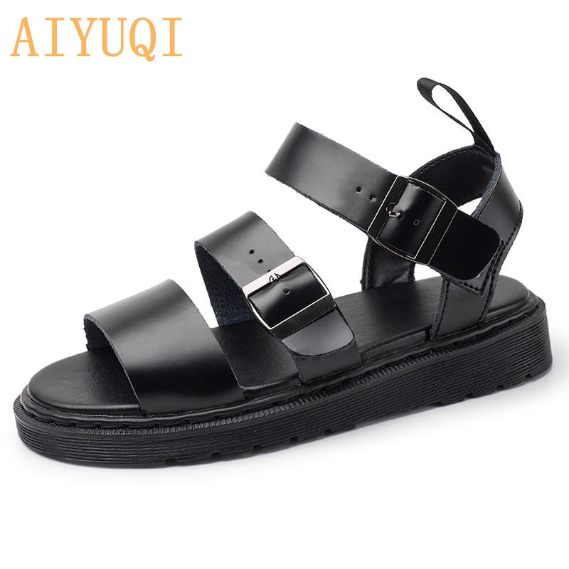 Summer Martin Sandals Women 2021 New Rome Buckle Open Toe Beach Shoes Women Genuine Leather Sandals Thick Women Couples