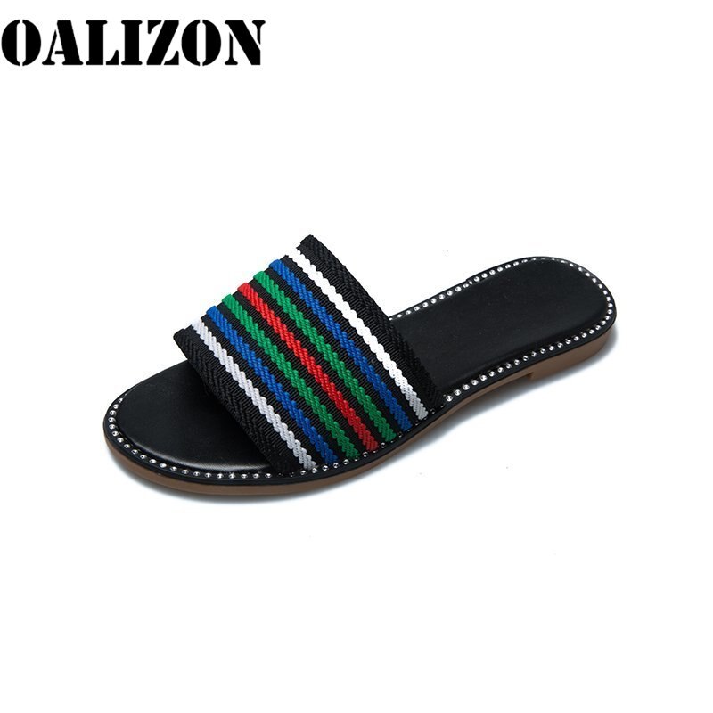Summer New Fashion Stripy Women's Flat Open Toe Sandal Slippers Shoes Woman Lady  Flip Flops Loafers Mules Slides Slippers Shoes