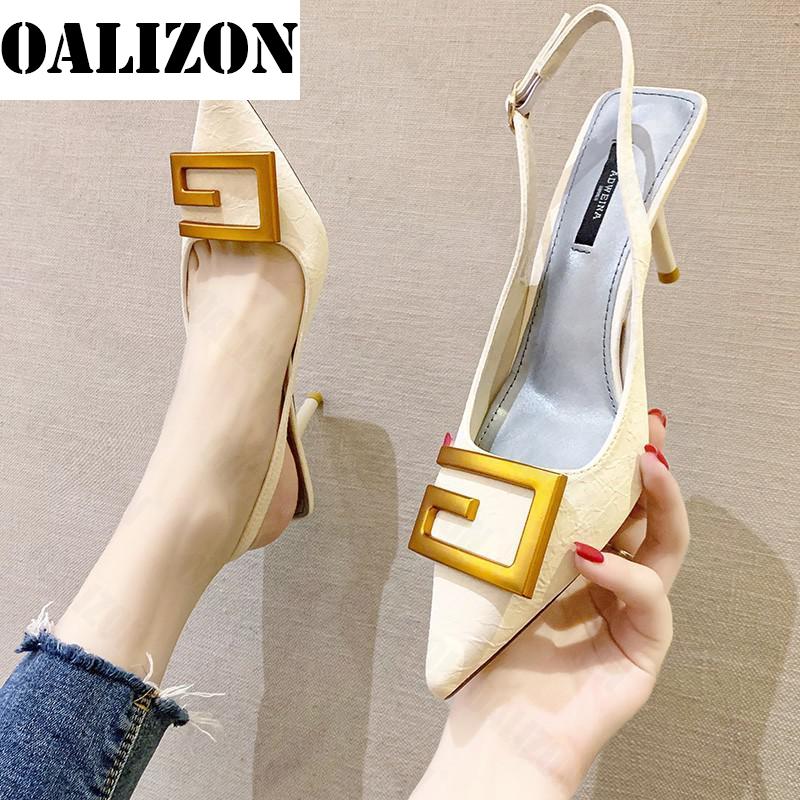 Summer Women Pumps Fashion Lady High Stilettos Heels Slingback Sandals Soft Leather Heels Shoes Woman Pointed Toe Sandals Shoes