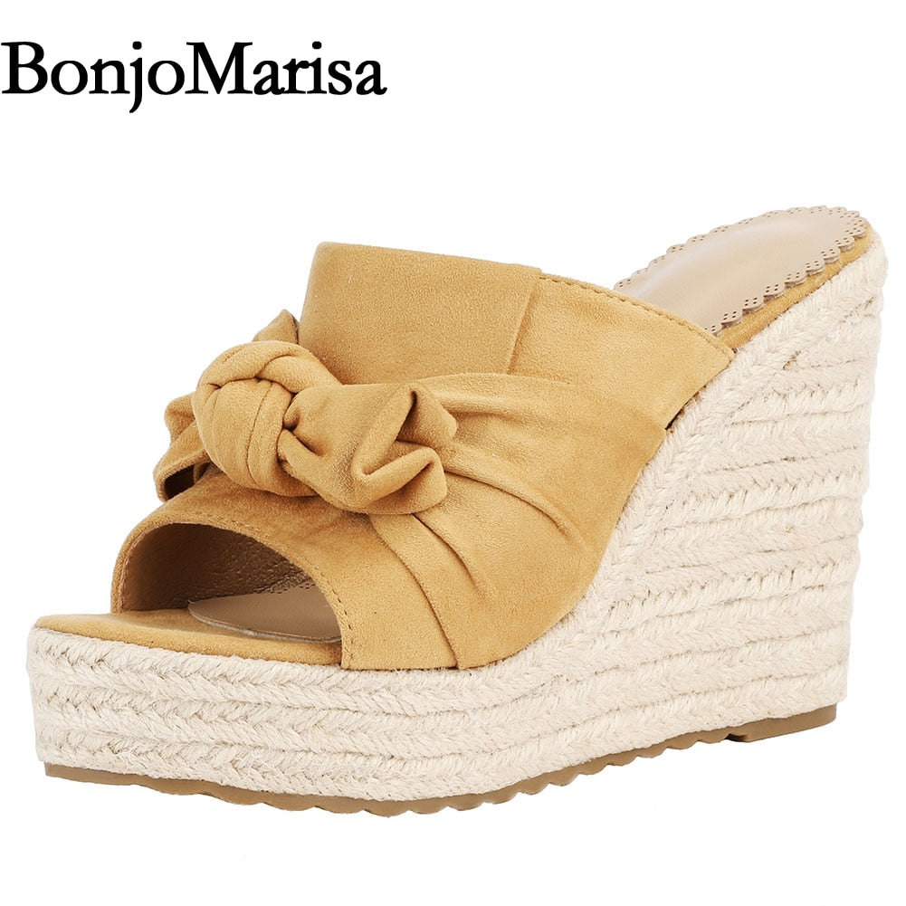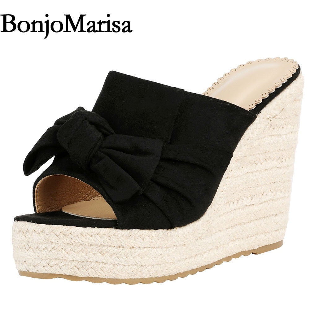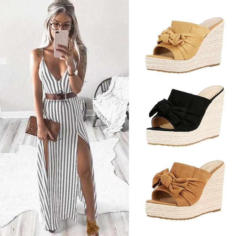 Sweet Butterfly Knot Slip On Sandals Fashion Summer Espadrille Wedge Heeled Shoes Woman Open Toe Platform Party Casual Sandals