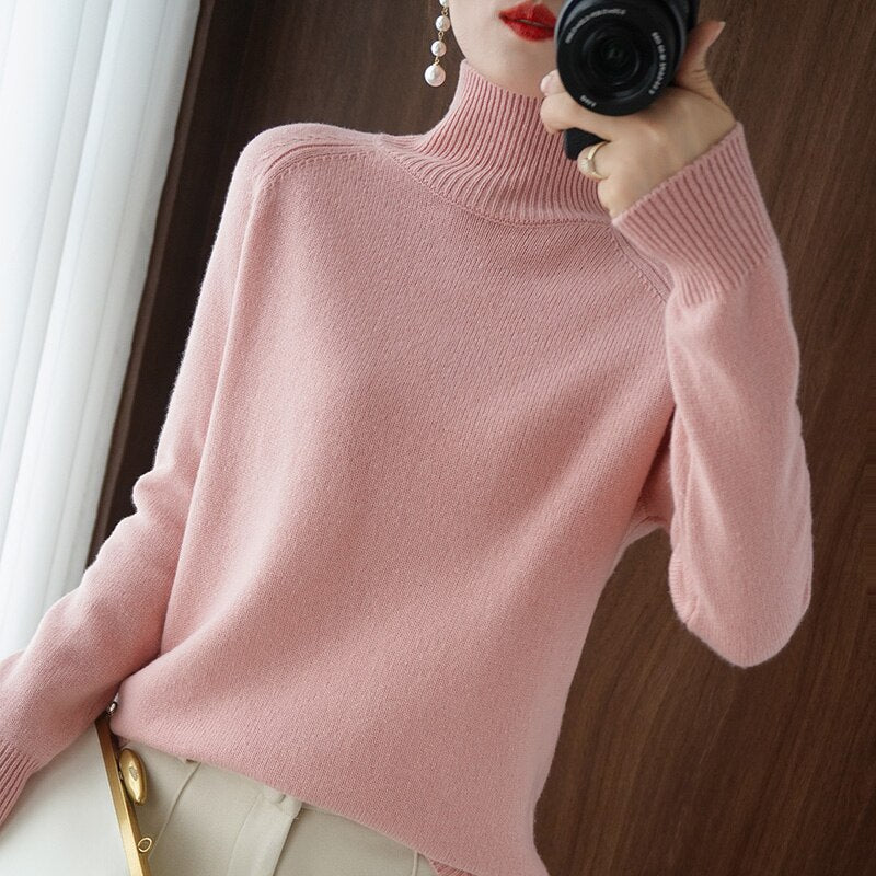 Turtleneck Cashmere sweater  women winter cashmere jumpers  knit  female long sleeve thick loose pullover