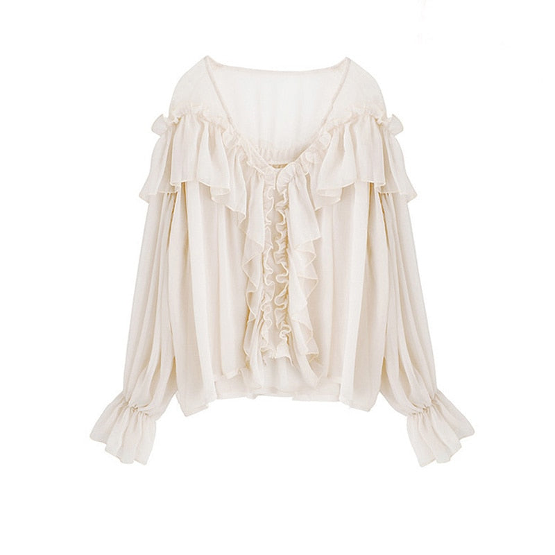 Model Number: V-neck Sexy Shirts Women See Through Boho Mesh Blouse Summer Ruffle