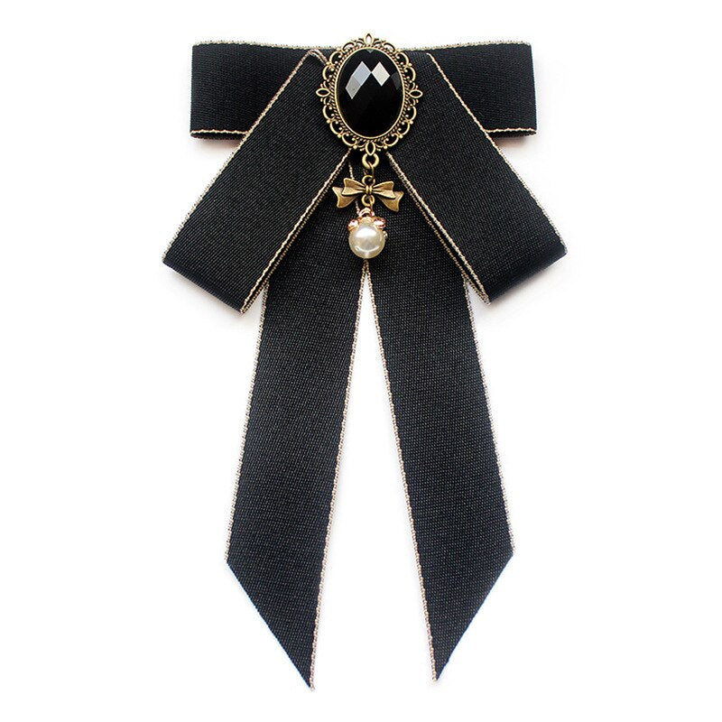 Vintage Bow Tie Cameo Ladies Head Diamond Ribbon Tassel Brooch Chic Girls Elegant Jewelry Collar Pin Girl Cravat Gift for Men