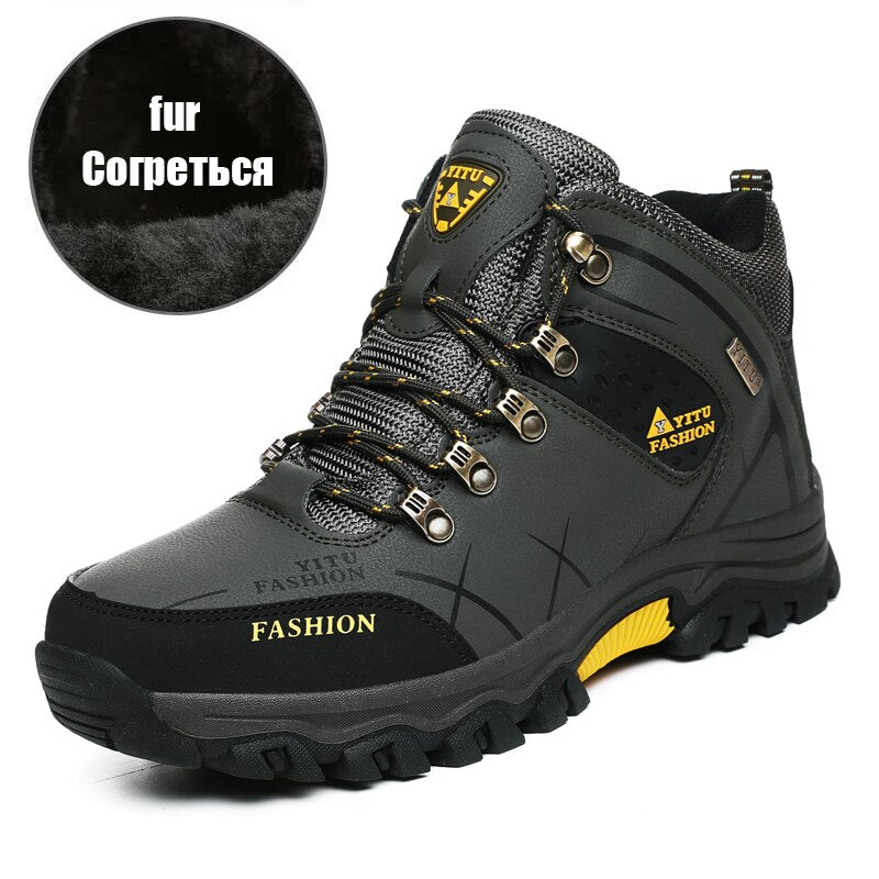 Winter Ankle Boots Leather Men Casual Shoes Outdoor Waterproof Work Rubber Mens Hiking Boots Sneakers Warm Military Snow Boots