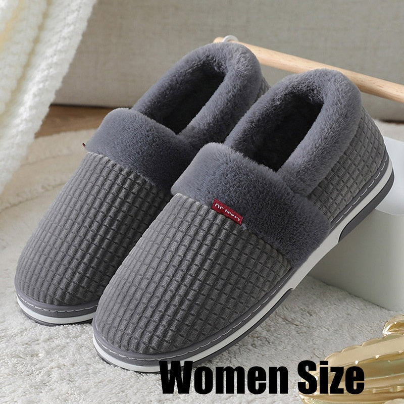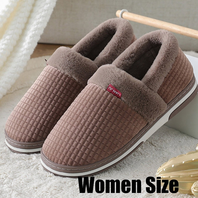 Winter Home Slippers for Women Bedroom Wear-Resistant Warm House Shoes Plush Slippers with Fur Indoor Big Size 45-46