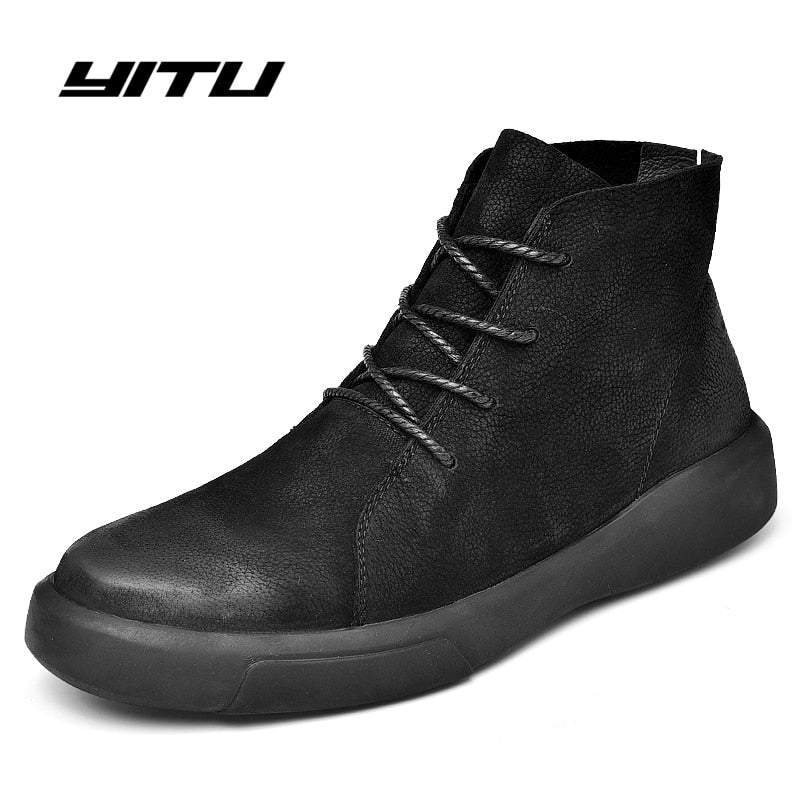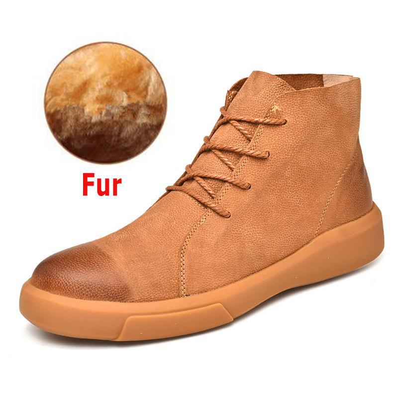 Winter Men Snow Boots Ankle Boots Man Leather Plush Warm Men Motorcycle Boots Autumn Outdoor Man Work Shoes Plus Size 37-47