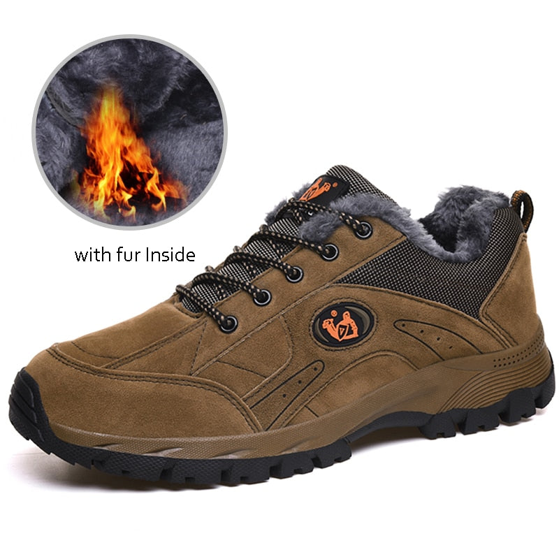Winter Outdoor Hiking Shoes For Male Adult Fashion plush warm Cow Suede Man Casual Men Shoes Walking Footwear Sneakers Men