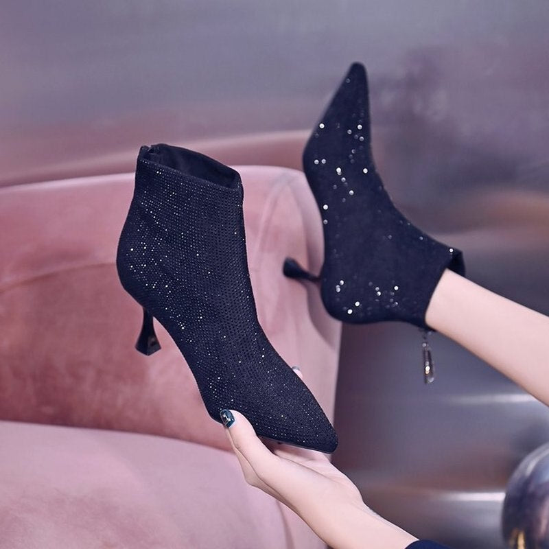 Winter Sexy Pointed Toe Women's Ankle Boots Rhinestone Modern Boots Women's Autumn High-heel Short Boots 2021 Thin Martn Boots