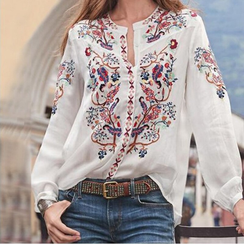 Women Bohemian Clothing Blouse Shirt Vintage Printed Tops Ladies Blouses Blusa Feminina Long Sleeve Shirts For Women Clothes