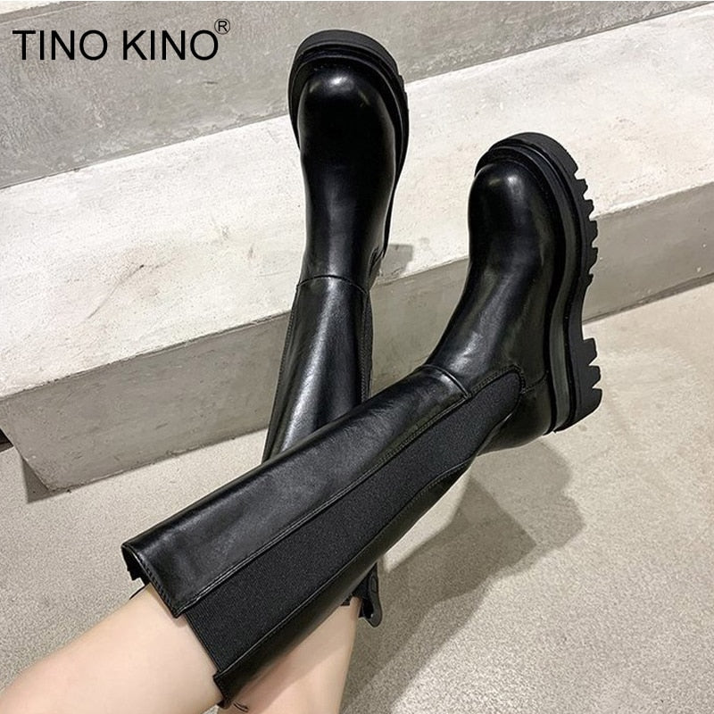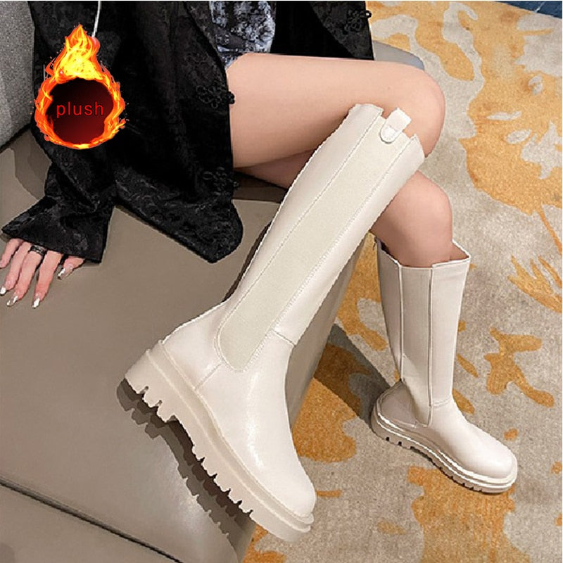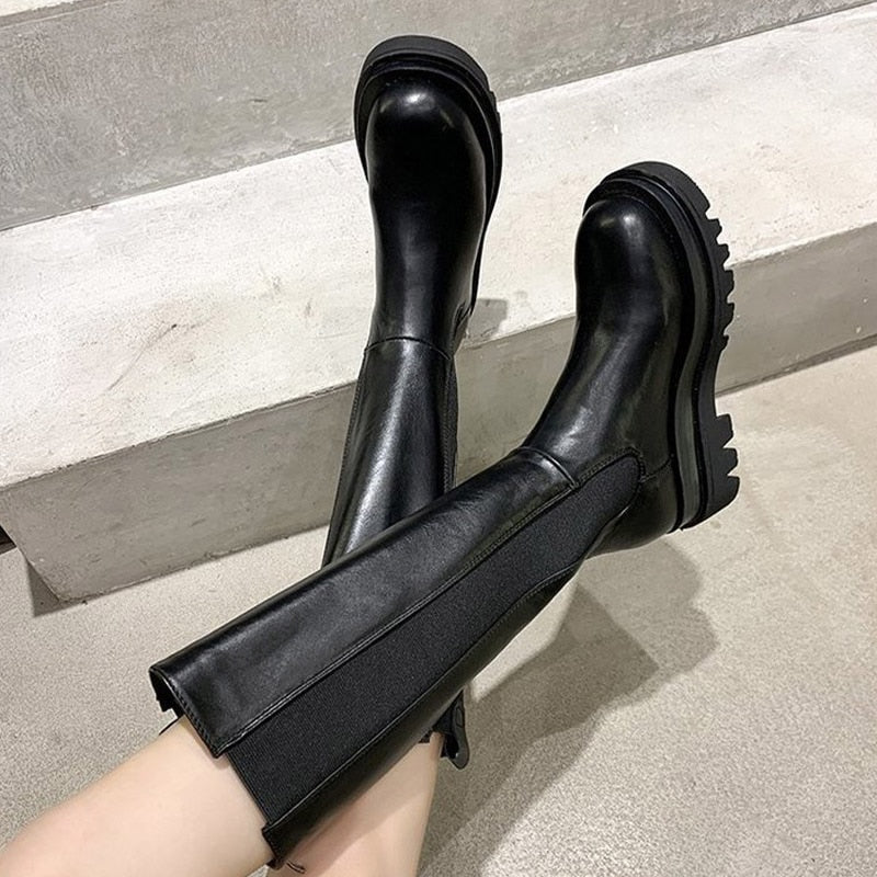 Women Long Boots Knee high Shoes Chunky Heels Autumn Winter Brand Designer Chelsea Platform Boots Fashion Ladies Footwear 2021