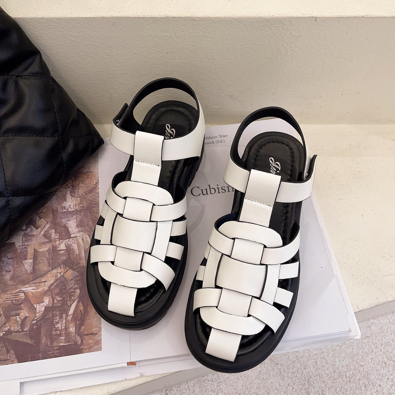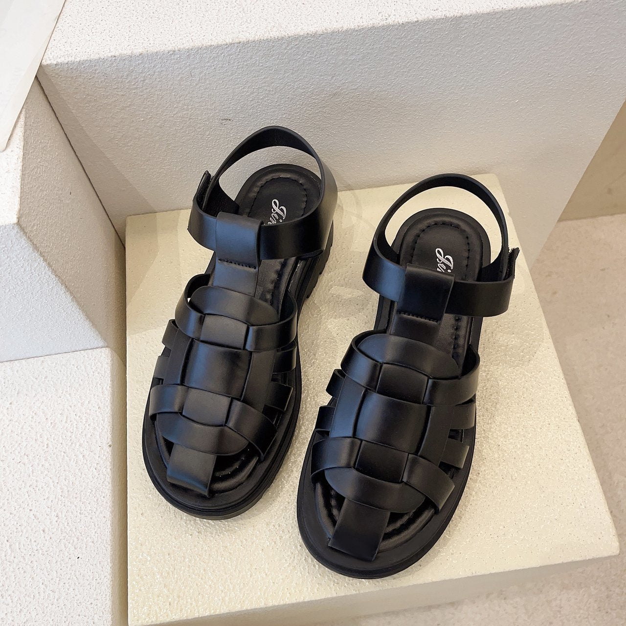 Women Sandals 5cm High Heels Falts Paltform Shoes Women 2021 Summer New Casual Pu Leather Desiger Sexy Fashion Sandals Slippers