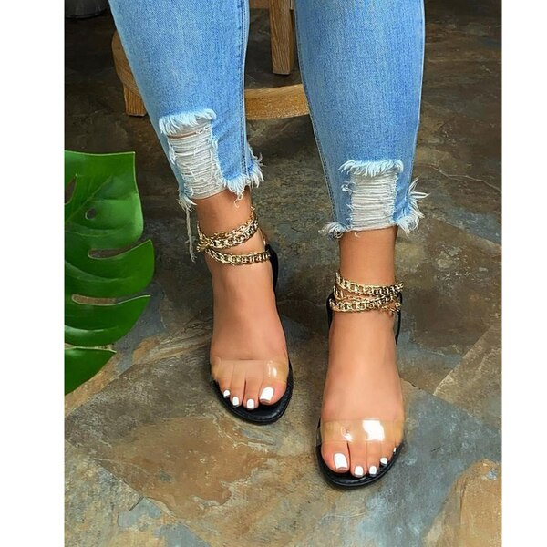 Women Sandals New Style Flat 2021 Summer Women's Transparent Chain Open Toe Shoes Roman Beach Sandalias Mujer Sapato Feminino