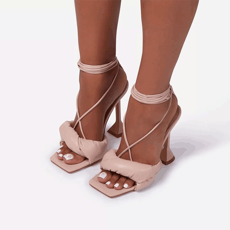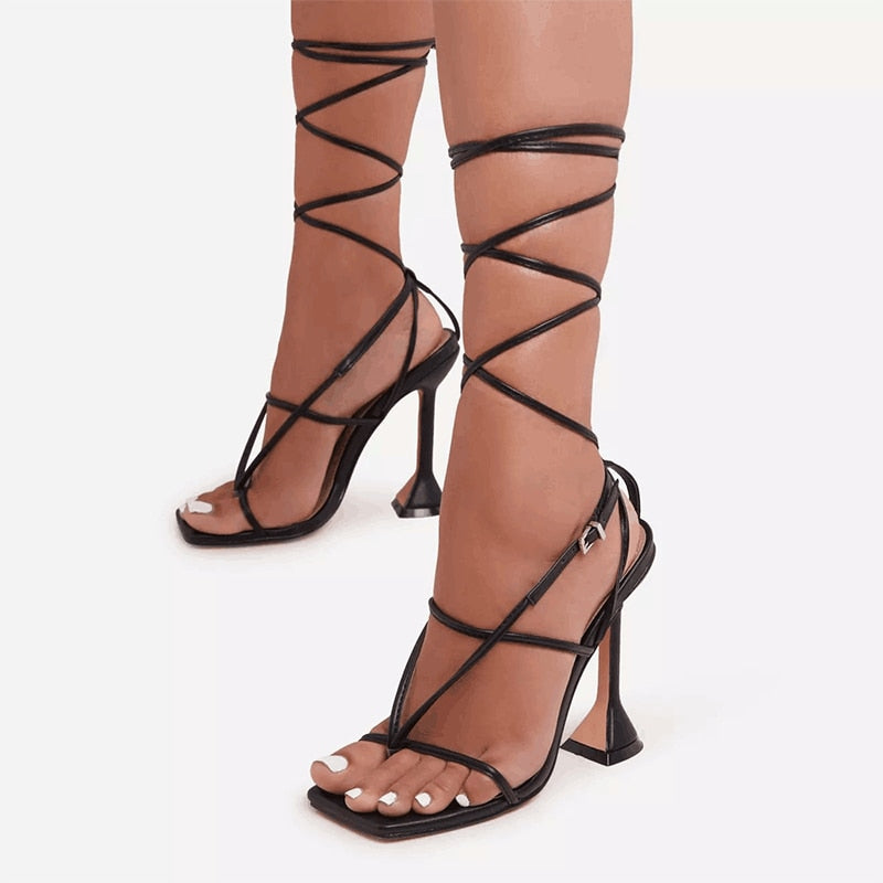 Women Sandals Sexy Summer Shoes Gladiator Clip Toe High Heels Bandage Buckle Strap Pumps Squre Toe Ladies Party Fashion Stiletto