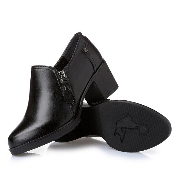 Women shoes waterproof Genuine leather high-heeled women's singles shoes high quality fashion ladies Casual Shoes Boots