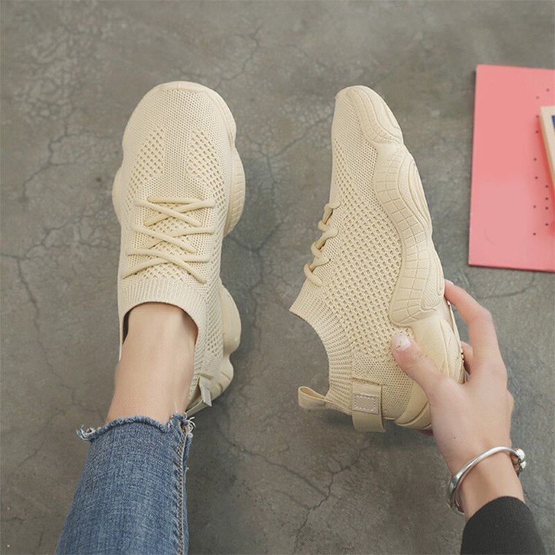 Women Sneakers Mesh Flat Autumn Vulcanized Ladies Lace Up Stretch Fabric Platform Casual Shoes Female Breathable Fashion