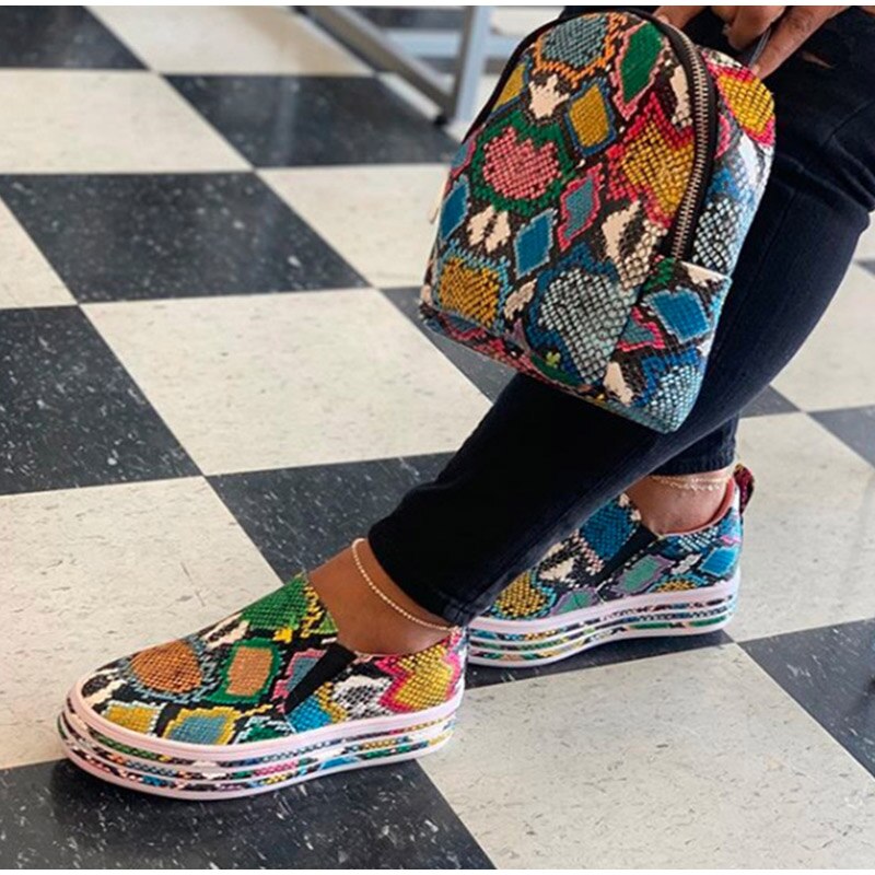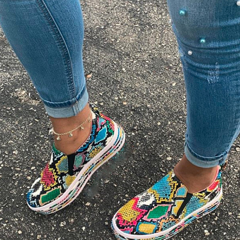 Women Sneakers Snake Printing Autumn Slip On Flat Vulcanized Shoes New PU Leather Female Fashion Platform Woman Shoes