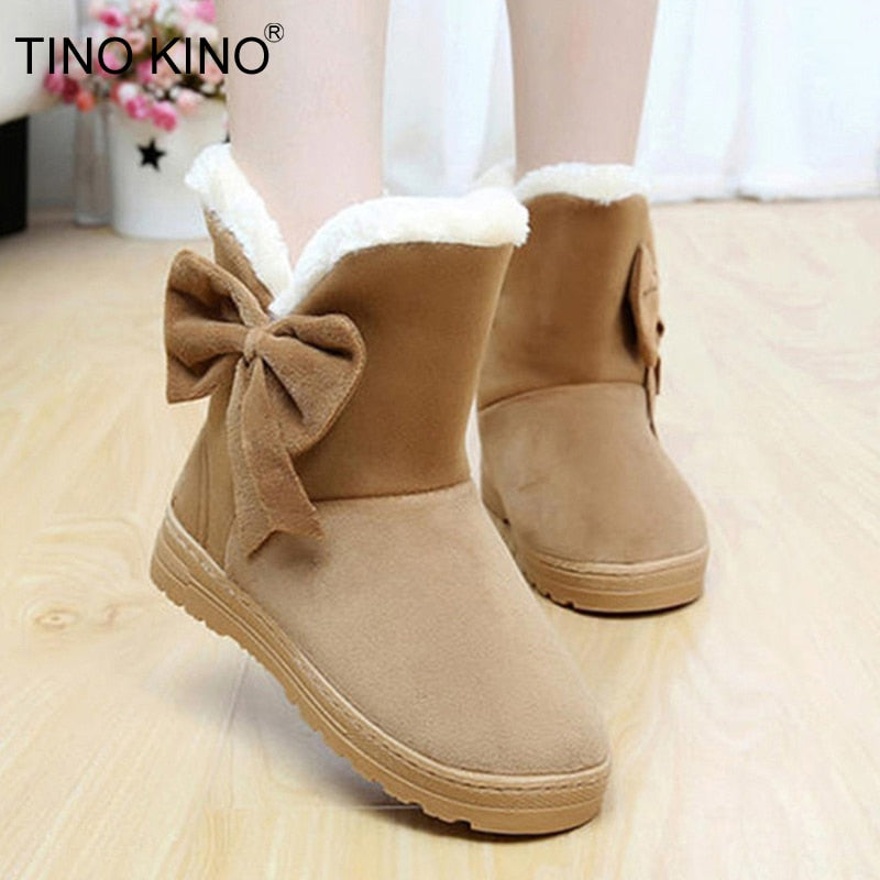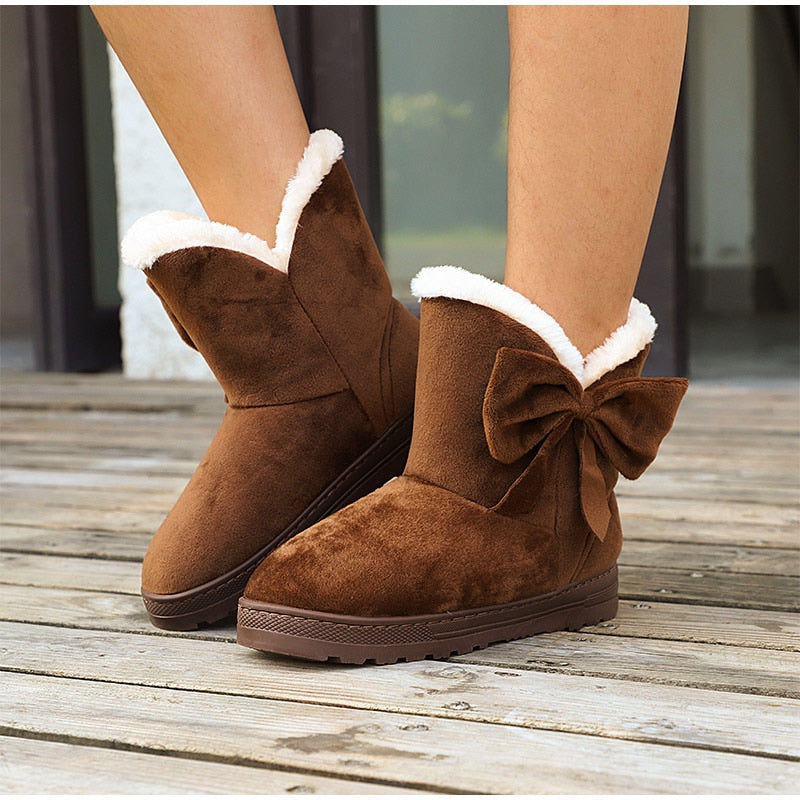 Women Snow Boots Winter Shoes Warm Casual Fur Ankle Female Bowtie Non Slip Plush Suede Flats Slip On Fashion Ladies Footwear New