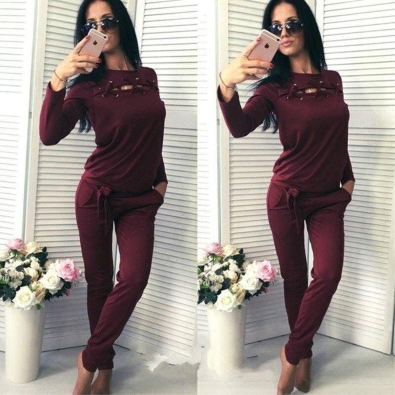 Women Spring Autumn Casual Solid Fitness Set Long Sleeve Hoody Long Pants Women Tracksuit Sportswear
