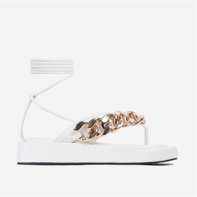 Women's 2021 Fashion Chain Flip Flops Sandals Shoes Women Clip Toe Thong Platform Lace Up Ladies Casual Gladiator Sandals Shoes