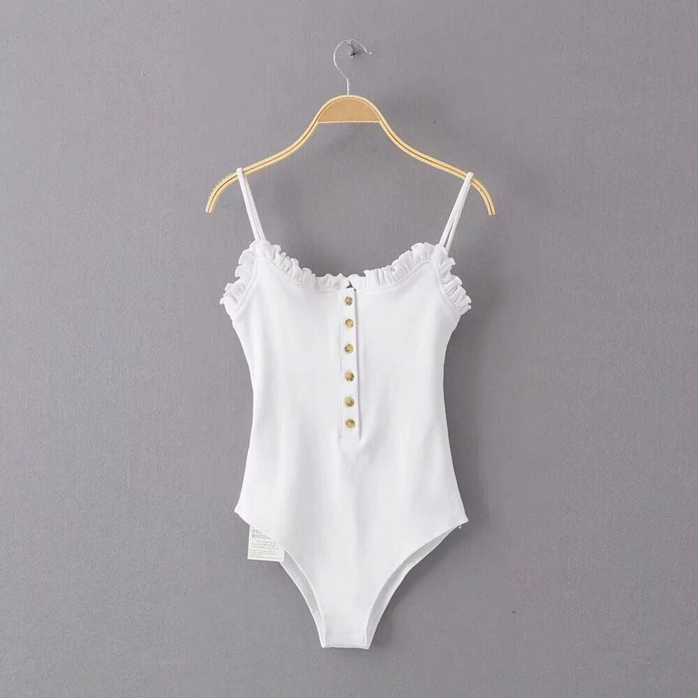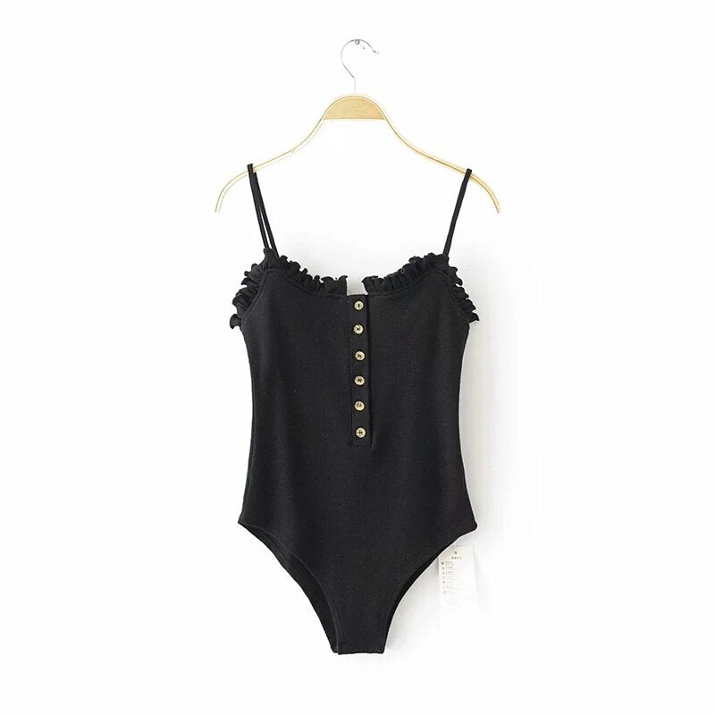 Women's Bodysuits Pink Knitted Tops Female Camisole Playsuit Solid Sexy Button Sleeveless lace Backless Slim Green Jumpsuit TRF