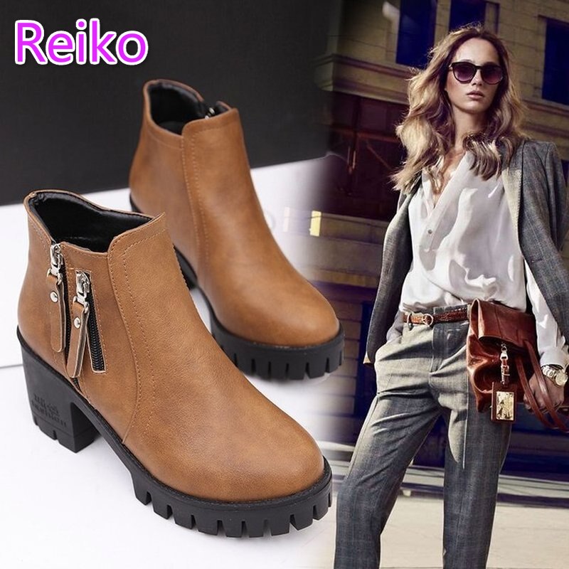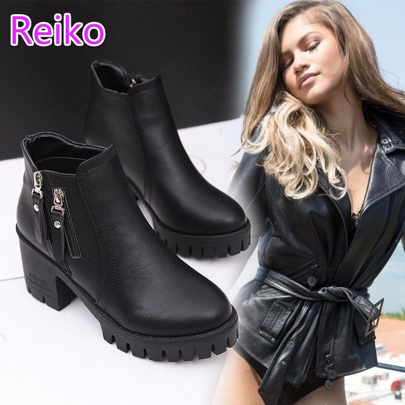Women's buckle autumn and winter plus velvet short-tube black boots thick-heeled high-heeled women's motorcycle cotton boots