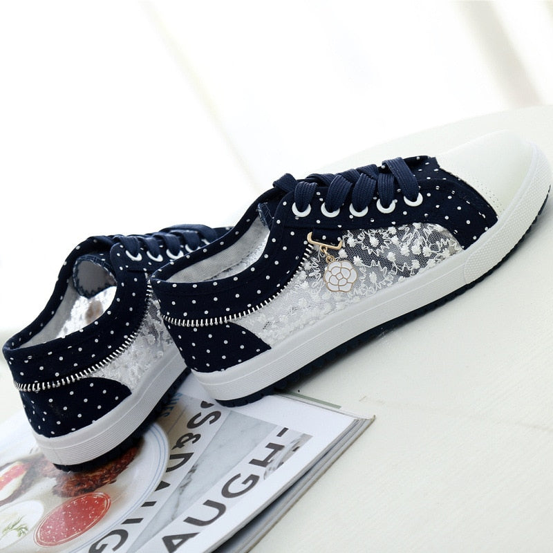 Women's Casual Shoes Summer Fashion Low Top Women's Sneakers Hollow Out Breathable Mesh Low Female Casual Canvas Shoes