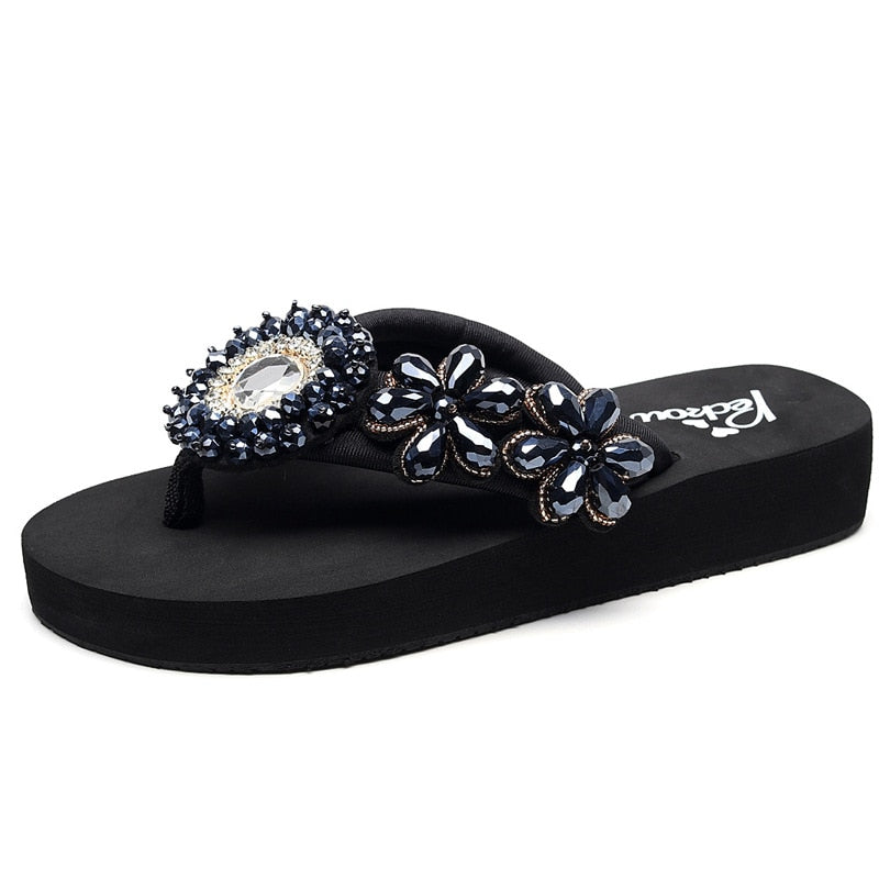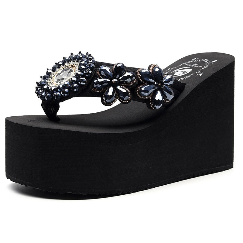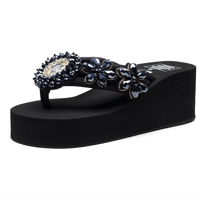 Women's Platform with Wedges Flip-flops Women's Summer Fashion Anti-skid Sponge Cake Beach Shoes Rhinestones High Heels Sandals