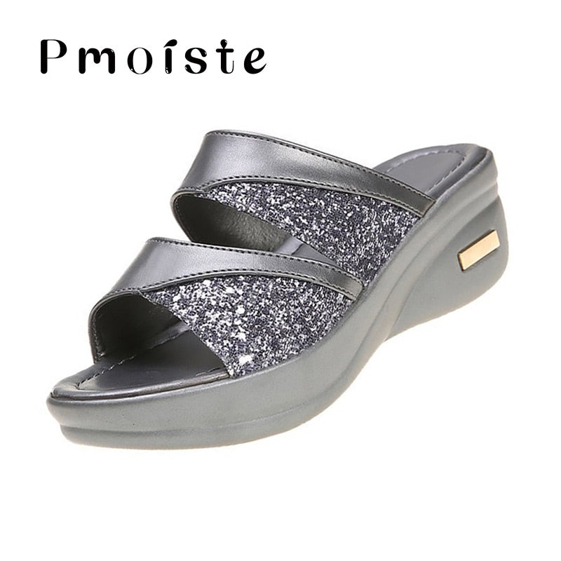 Women's sandals Platform 2020 New Rhinestone Peep toe Summer sandals for women Sexy Ladies Slides Wedges Female shoe Golden/Gray